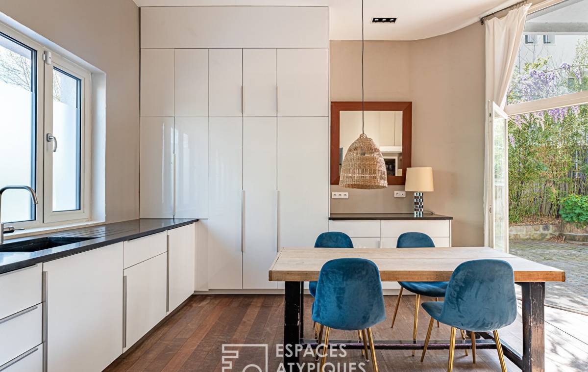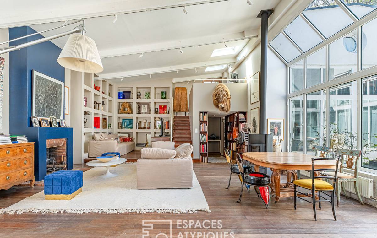 Renovated from a former architectural firm, this exceptional property captivates with its exceptional volumes, its 15 m² central patio, its 53 m² outdoor courtyard, and its modularity. It benefits from a prime location, in close proximity to the German International School of Paris (DISDP) and the American School of Paris, making it ideal for international or multicultural families.