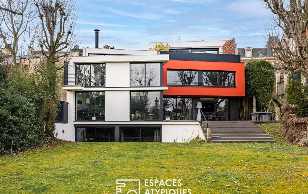 A unique contemporary architecture in Saint Cloud, a subtle blend of discretion and refinement, this exceptional house open to the outside offers daily well-being, a unique family lifestyle with Paris as a backdrop.