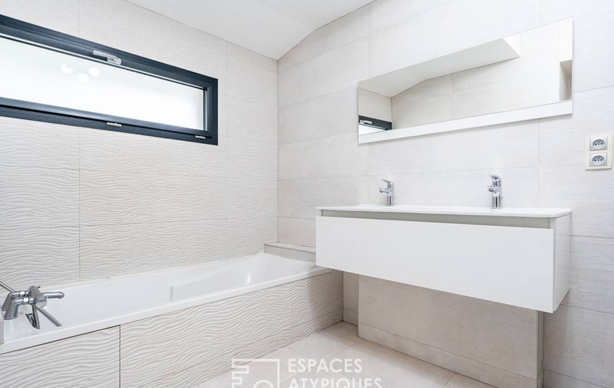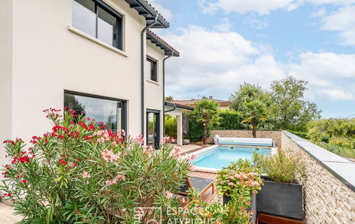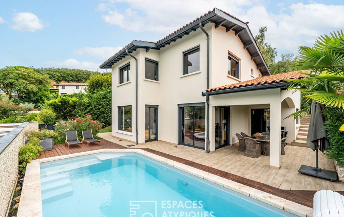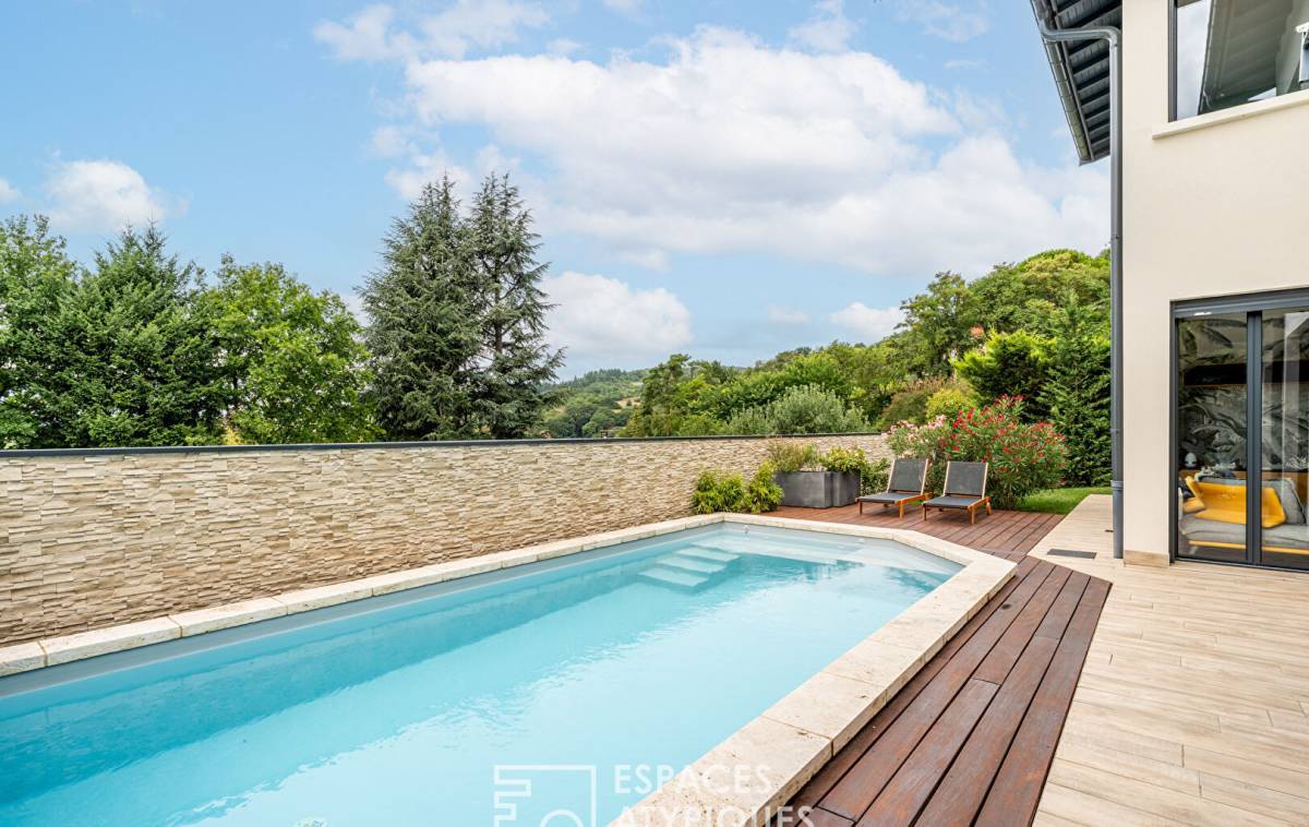 Outside, a vast terrace without vis-à-vis and a heated swimming pool harmoniously extend the living spaces.
