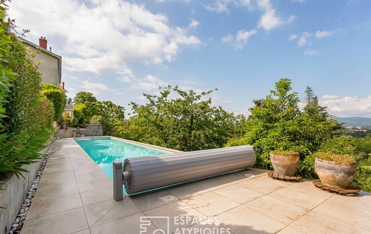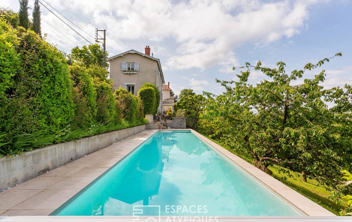 In Saint-Didier-au-Mont-d'Or, in the heart of a preserved residential environment, this charming, fully renovated house with a swimming pool, dating from 1875, offers 214 sqm of living space on a landscaped plot of 2,300 sqm.