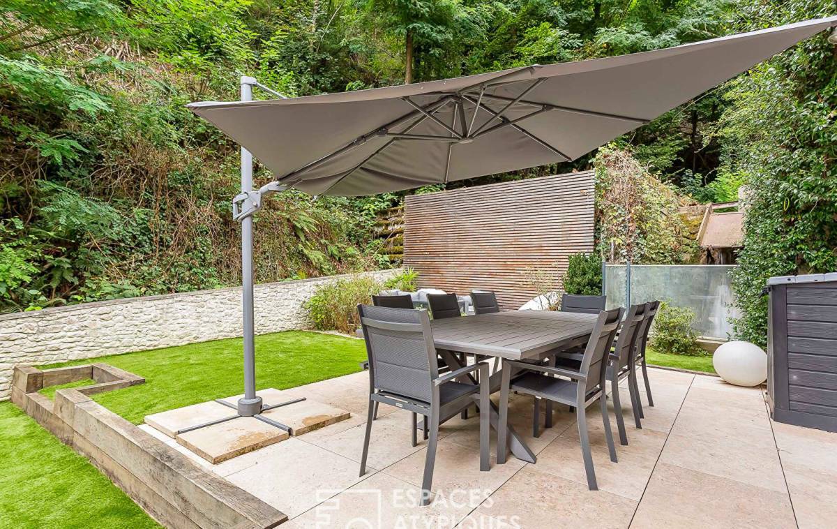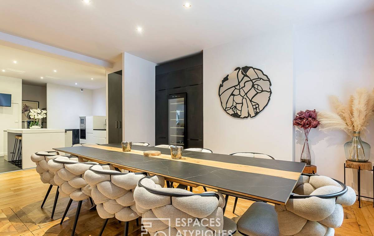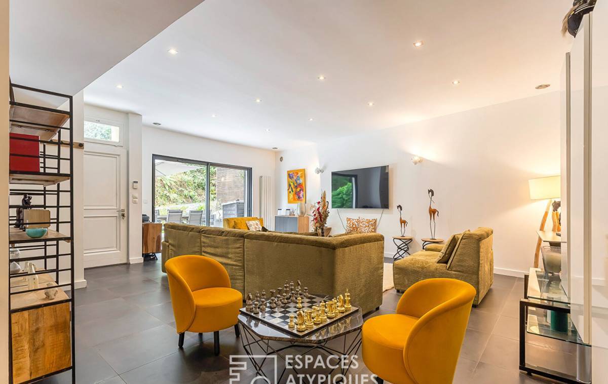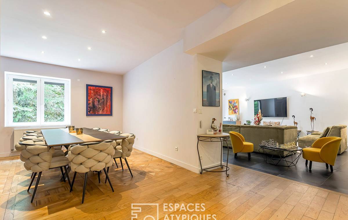 Like a house, in the immediate vicinity of the 9th arrondissement of Lyon and yet in an ultra-green space of the Monts d'Or, this 163m2 property has a terrace and a private garden of approximately 50m2. The entrance opens onto a cozy living room which serves the open-plan fitted kitchen and the dining room with magnificent parquet floors. In the extension and all on the same level, two bedrooms share a bathroom and a third bedroom has its own private shower room. At the gates of the city but in a magnificent environment, this house-style apartment will delight its future guests for pleasant convivial moments. 1 cellar 2 parking spaces Subject to co-ownership status: 3 Lots - Annual charges: EUR365 ENERGY CLASS: C / CLIMATE CLASS: D Estimated average amount of annual energy expenditure for standard use, established from energy prices for the year 2021, as of January 1: between EUR1,800 and EUR2,200 -