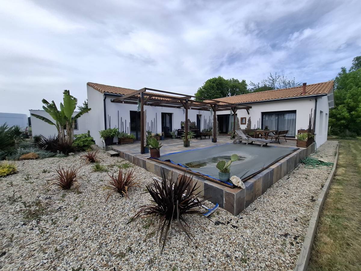 Close to Saintes, in the immediate vicinity of the RN137, this house renovated in 2022 combines modernism, green surroundings and accessibility to Saintes, Royan or La Rochelle. With a living area of approximately 150 m2, it offers a large, bright living room with an open-plan fitted kitchen. Two bedrooms, an office, a cellar, and an adjoining garage make up the interior spaces, designed for everyday use.