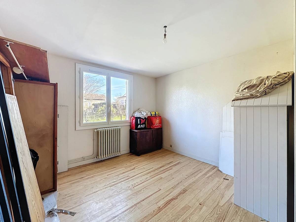 On the left, adorned with a beautiful wooden parquet floor, a large living room (21 m²) with large French windows gives access to the front garden and kitchen (10.6 m²). To the right, a small corridor leads to two bedrooms (12.8 m² and 9.5 m²), a 7.6 m² bathroom and toilet. Behind the staircase, a door gives access to a small gravel courtyard.