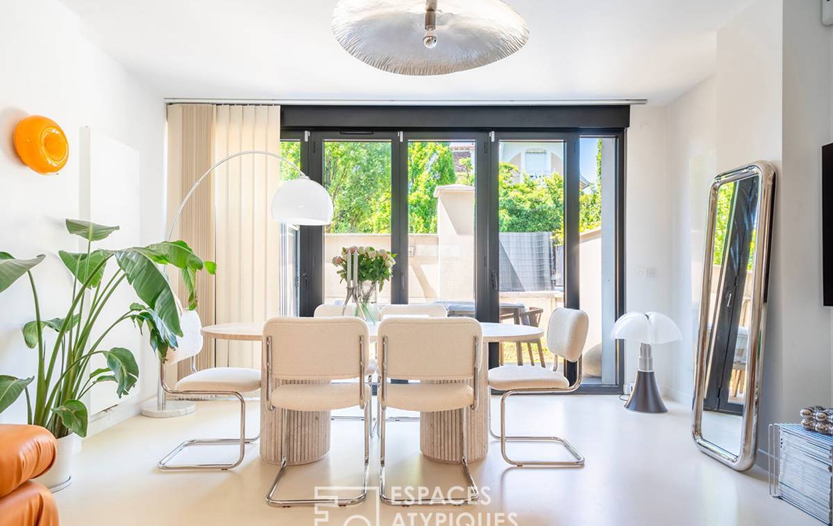 This 86sqm duplex is located in the highly sought-after Parc de Saint Maur neighborhood, in the quiet surroundings of a brilliantly successful renovation.