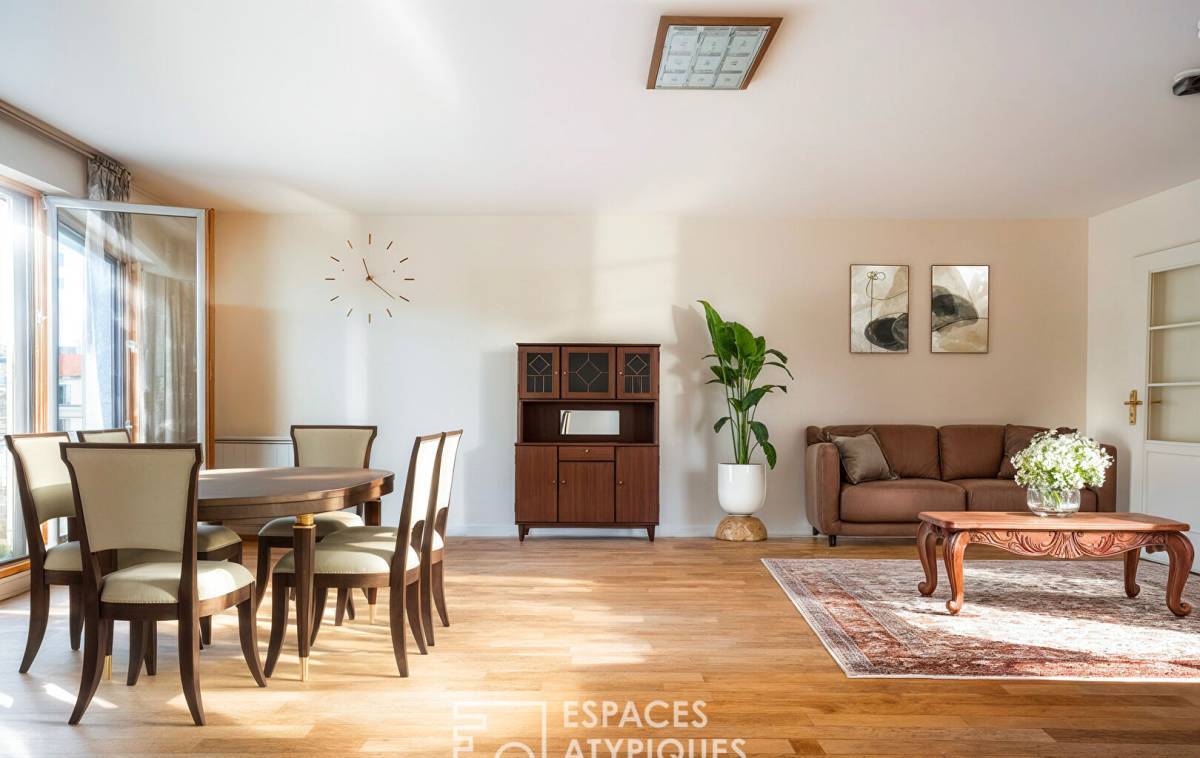 Just steps from the Charenton-Écoles metro station and literally a stone's throw from the Bois de Vincennes, this 125 sqm (124.53 sqm Carrez) apartment stands out as a rare address.