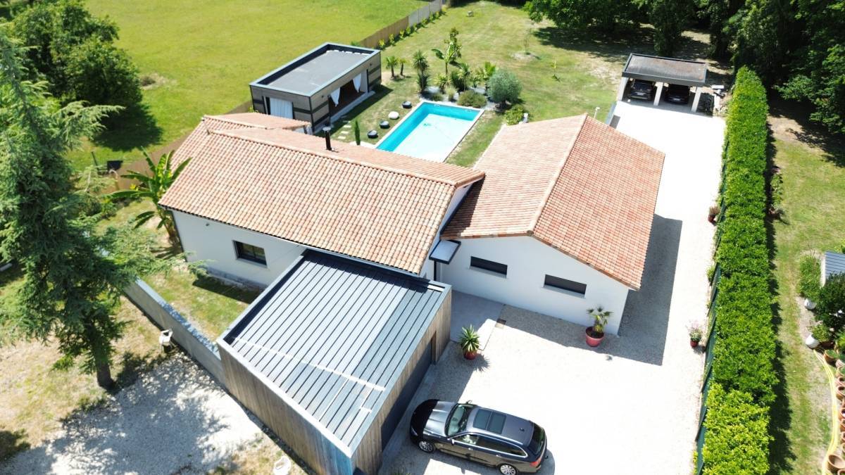 BARBEZIEUX (16) - Just a few minutes from the town center and amenities. Beautiful contemporary house with approximately 200 m2 of living space on one level, built in 2020 on a plot of approximately 2,284 m2. This haven of well-being offers spaces designed for family life but also for entertaining.