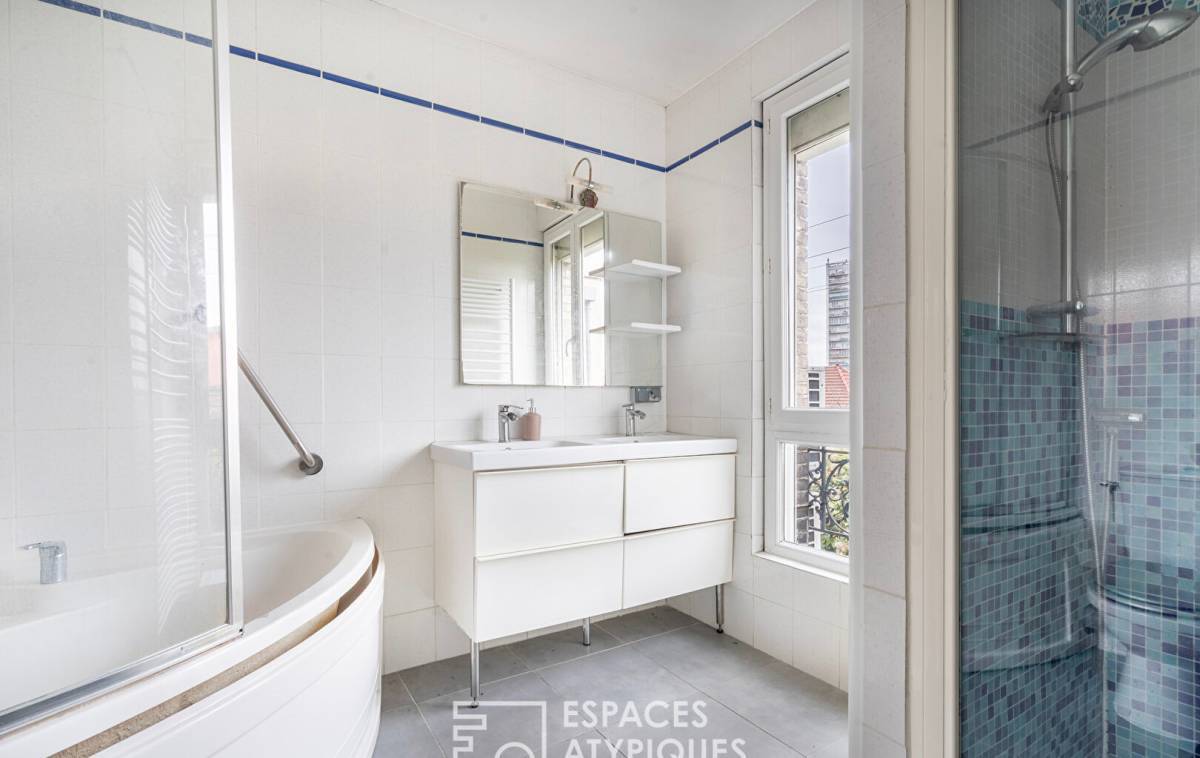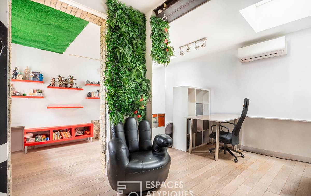 On the garden level, a 60 sq m area offers a hybrid space: a playroom, independent studio, creative office, or even a gym?the possibilities are endless. Bathed in natural light from skylights, it also features a shower and toilet.