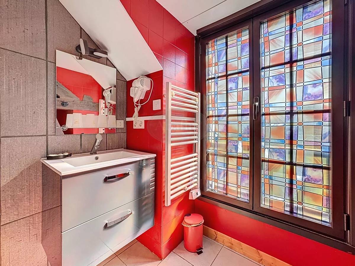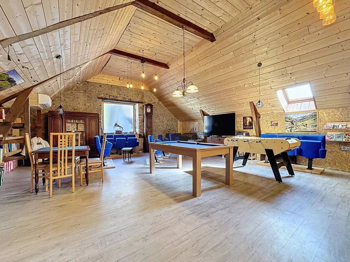 The upper floor of the building is dedicated to the guest rooms. There you will find three tastefully decorated rooms, each with its own private shower room or bathroom. Continuing on, a vast 80 m² reception room, used for breakfasts and guest meals, welcomes visitors who can relax around a pool table or in the cinema area.