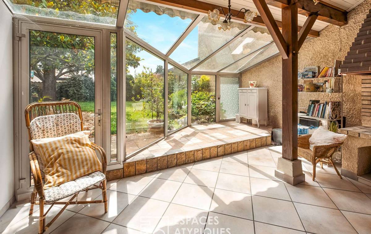 Located in Saint Priest Village, a 5-minute walk from the shops, this building sits on a 1220m2 plot of land, sheltered from view. The house accommodates on one level, the kitchen with a bright dining area thanks to a triple exposure, a living room extended by a winter garden in the greenery, a good-sized bedroom, a bathroom, toilets, as well as a laundry room are available on this level. Upstairs, three bedrooms between 19 and 22 m2, one of which has a bathroom. Possibility of transforming part of the house into an independent studio with an outside access. The outbuildings include a workshop / garage of 150m2 which could become an artist's studio, a guest house or an office space. ENERGY CLASS: D / CLIMATE CLASS: D Estimated average amount of annual energy expenditure for standard use, established from 2021 energy prices: between EUR2,340 and EUR3,320