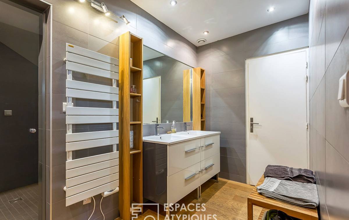 Hidden behind a discreet door, out of sight in a sought-after residential area of Tassin, this rare property of over 180m2 feels like a home, within a small, intimate co-ownership. From the entrance, the charm works: the garden, like a secret patio, with its wooden terrace sheltered under an elegant bioclimatic pergola, extends the interior spaces and invites you to an art of living indoors and outdoors from the first rays of sun. Facing south, the large living room, with beautiful volumes, unfolds opposite the open kitchen. On the ground floor, there is a beautiful master suite with dressing room and shower room; on the other hand, the children's area with 2 bedrooms, a shower room, office space or storage space as needed. Laundry room and back kitchen complete the comfort of this cocoon. A garage and two parking spaces (extra: EUR30,000) complete the features. Optionally, an independent 28 sqm studio with exterior can also be acquired: ideal for a rental project, a teleworking space, an artist's studio or even a fourth bedroom depending on your wishes. An atypical living space, in absolute calm, to discover as a confidential interlude in the heart of urban life. Property subject to the status of co-ownership: 7 lots including 5 residential lots. ENERGY CLASS: C / CLIMATE CLASS: C Estimated average amount of annual energy expenditure for standard use, established from 2021 energy prices: between EUR2,460 and EUR3,380