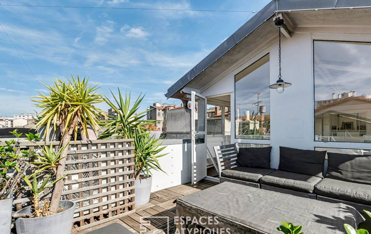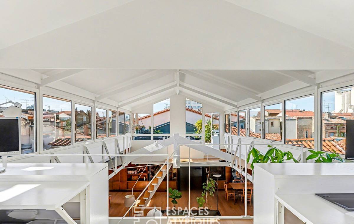 It is undoubtedly the skylight that defines the space's identity. Elevated above the Toulouse rooftops, it acts like a suspended belvedere.