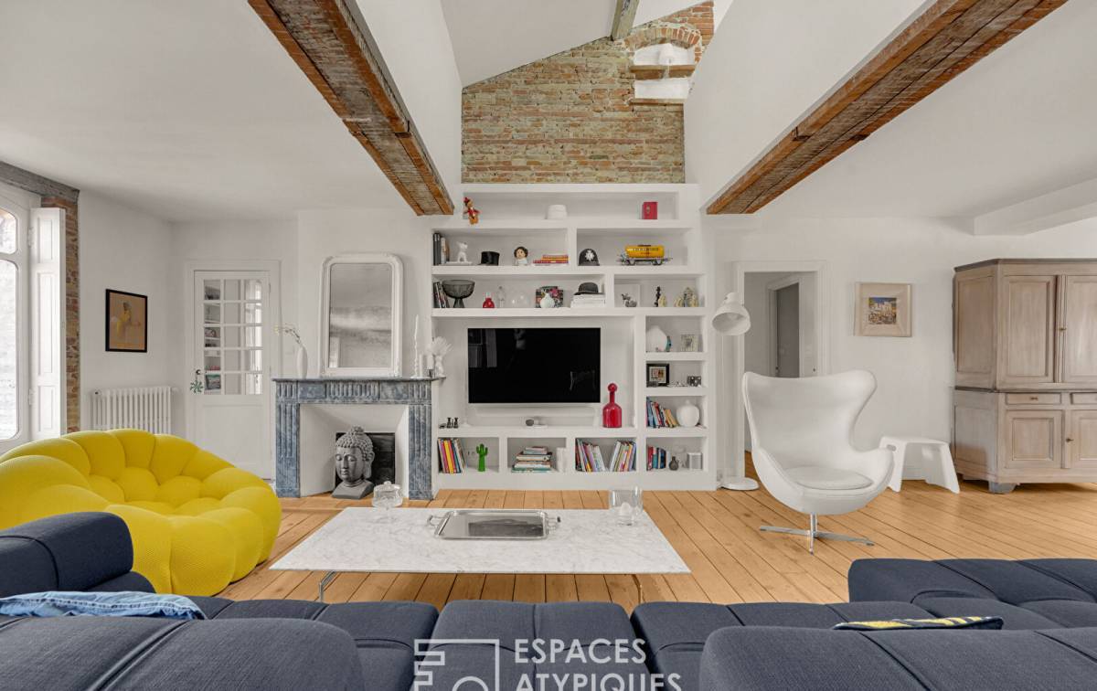This duplex benefits from an exceptional location on 276.86sqm Carrez, on the top floor of one of the most beautiful buildings in Saint Georges. The main entrance offers a lovely view of the volumes of the living room bathed in light. This warm living space of over 70sqm distributes two first bedrooms on the courtyard side and the independent bathroom. On the street side, the small living room is an ideal work and relaxation space. On the upper level, a large mezzanine leads to a majestic master suite of approximately 60sqm. Communicating via a former service corridor, a T2 converted into a laundry room and gym, has its own entrance. This also opens onto the private elevator that serves the apartment. The convertible attic reveals an intimate terrace, with the rooftops of Toulouse as a horizon. A garage and a cellar complete the services of this unique property, the main apartment of which is air-conditioned. Property subject to the status of co-ownership - 41 lots including 19 residential lots - annual co-ownership charges: EUR2,381. ENERGY CLASS: C / CLIMATE CLASS: C. Estimated average amount of annual energy expenditure for standard use, established from energy prices for the year 2021, 2022 and 2023: between EUR2,290 and EUR3,180. Information on the risks to which this property is exposed is available on the Géorisques website Sales agent: Aymeric HUYNH 06.71.86.07.63. EI - RSAC number 890473309