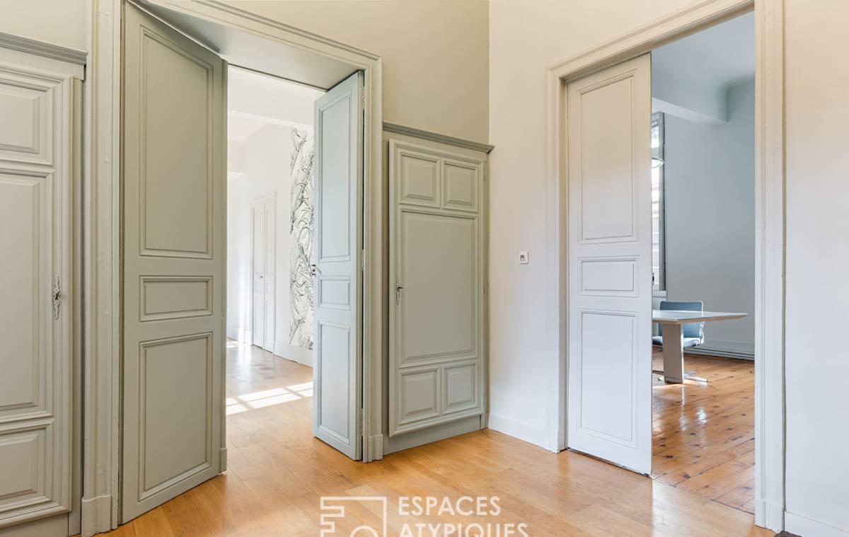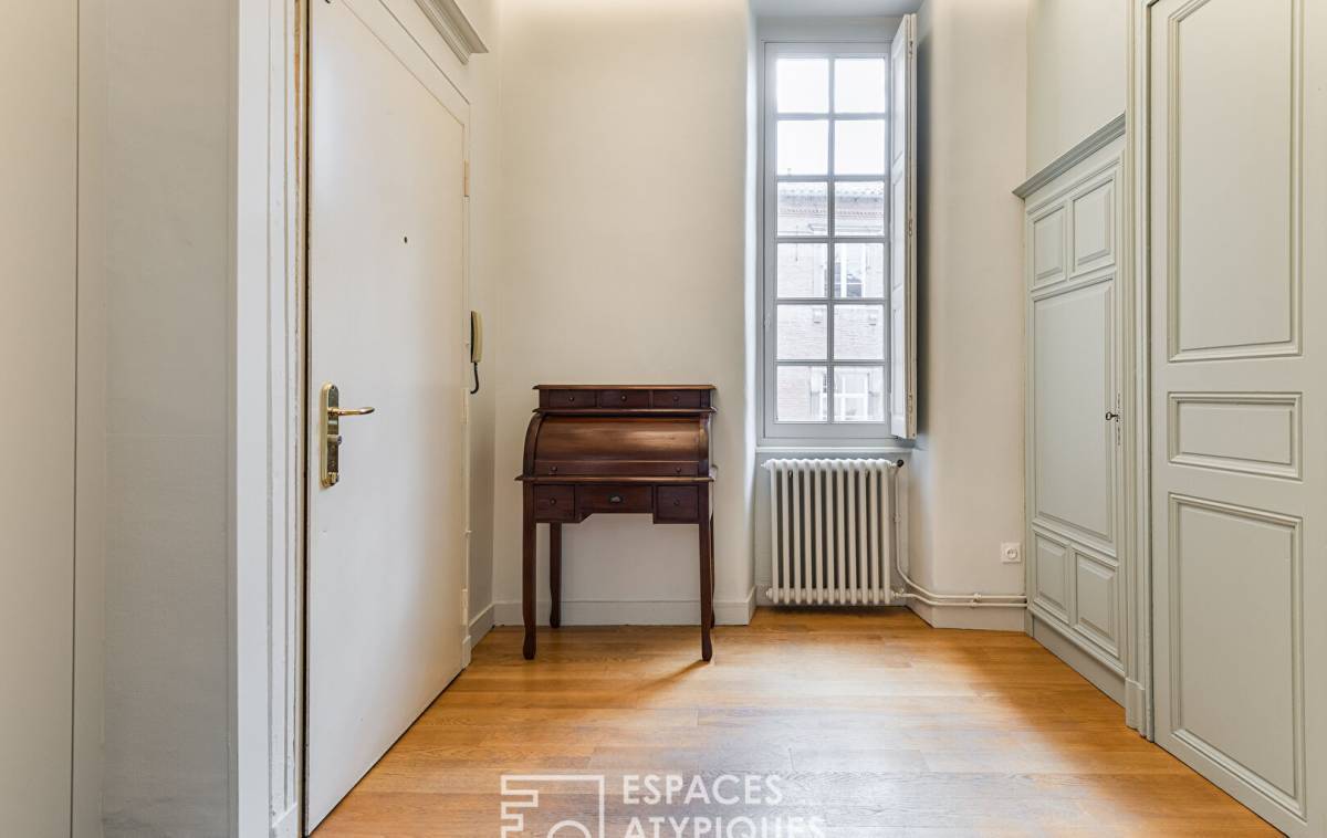 Ideally located just steps from the sought-after Place des Carmes, this Haussmann-style apartment captivates with its timeless charm and meticulous renovation. Nestled on the second floor of a bourgeois building with an interior courtyard, it offers a unique living environment where the character of the past blends harmoniously with modern comfort. A refined and flexible space, thanks to its generous volumes and functional layout, this apartment can be redesigned according to your needs to offer an elegant residence adapted to your lifestyle. A vast reception area bathed in light combines a living room and a dining room. The whole is enhanced by beautiful fireplaces and remarkable high ceilings, creating a warm and refined atmosphere. The current layout includes three spacious bedrooms, a separate and bright kitchen, and a separate office space. A shower room with WC and a second separate WC complete this property. An exceptional location, in the heart of the Carmes district, this apartment benefits from a privileged living environment. Shops, transport and the emblematic places of Toulouse are in the immediate vicinity, making everyday life easier. Services and annexes: This property has a vaulted cellar made of fairground bricks as well as two attics allowing additional storage. The city gas heating is supplemented by an air/air heat pump with air conditioning, thus offering optimal comfort in all seasons. The interior wooden shutters preserve the authentic charm of the place. A private parking space in the courtyard of the condominium completes this set. This unique apartment can be rearranged according to your desires and requirements. ENERGY Class: C / CLIMATE Class: C Average amount of annual energy expenditure for standard use, established from the energy prices of the year 2021: between EUR2,110 and EUR2,930. Information on the risks to which this property is exposed is available on the Géorisques website Sales agent: Marine Andrieu - EI - RSAC number 517 891 453 - 07 84 5 23 49