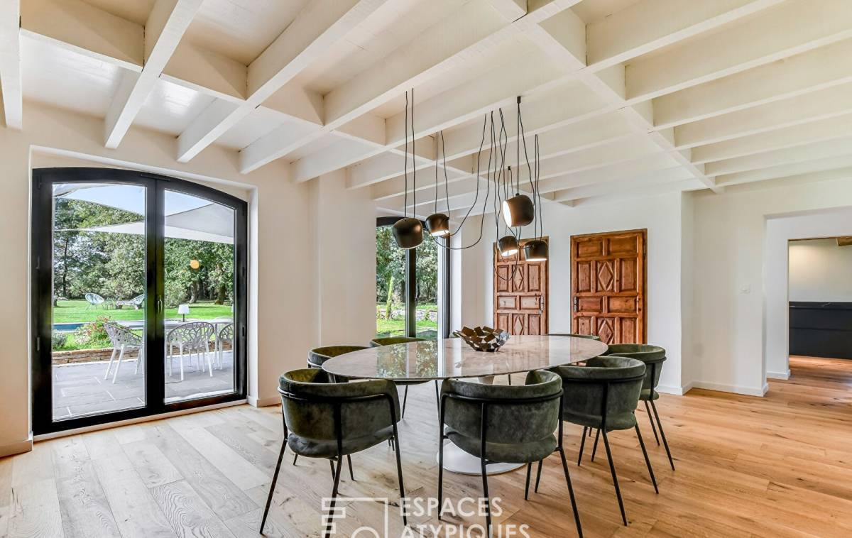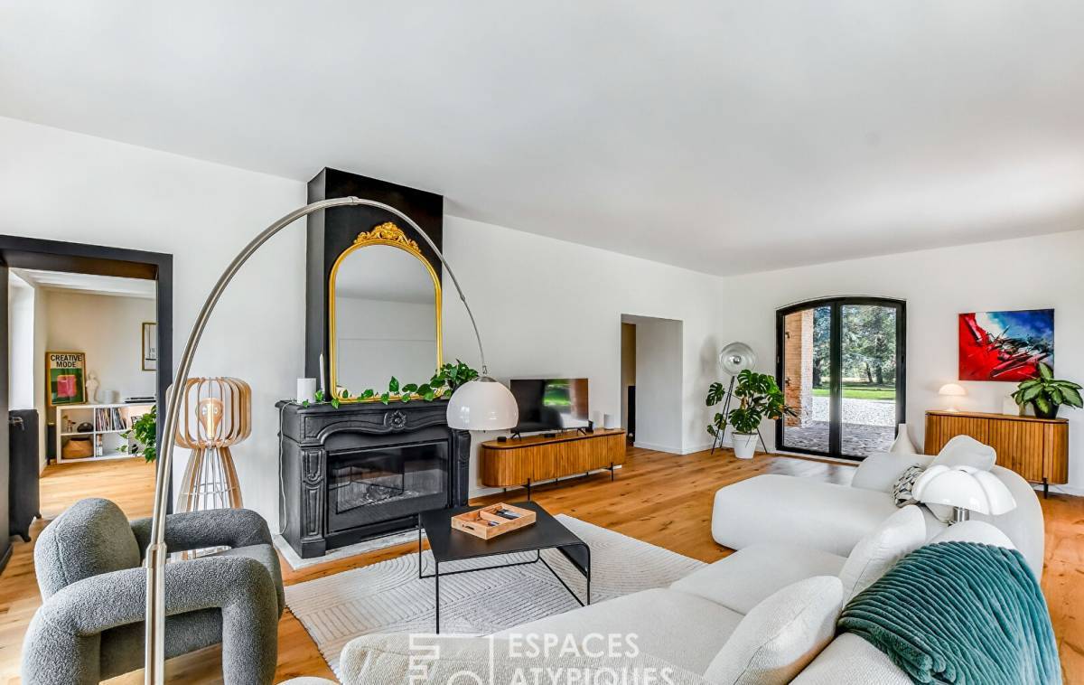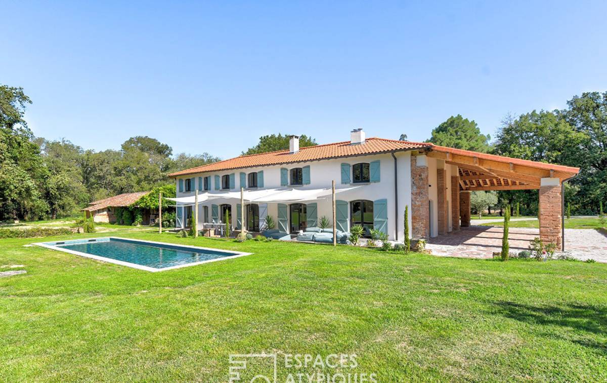 At the gateway to Lauragais, in the commune of Lanta, this renovated country house offers 310m² of living space in the heart of 3 hectares of wooded grounds.