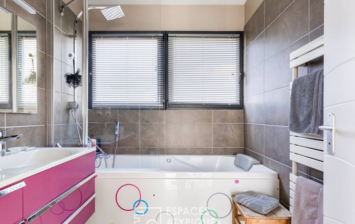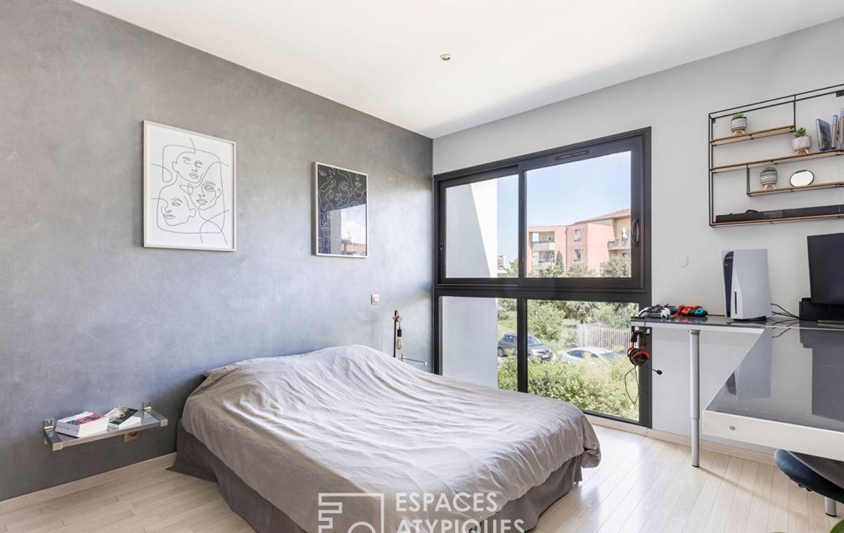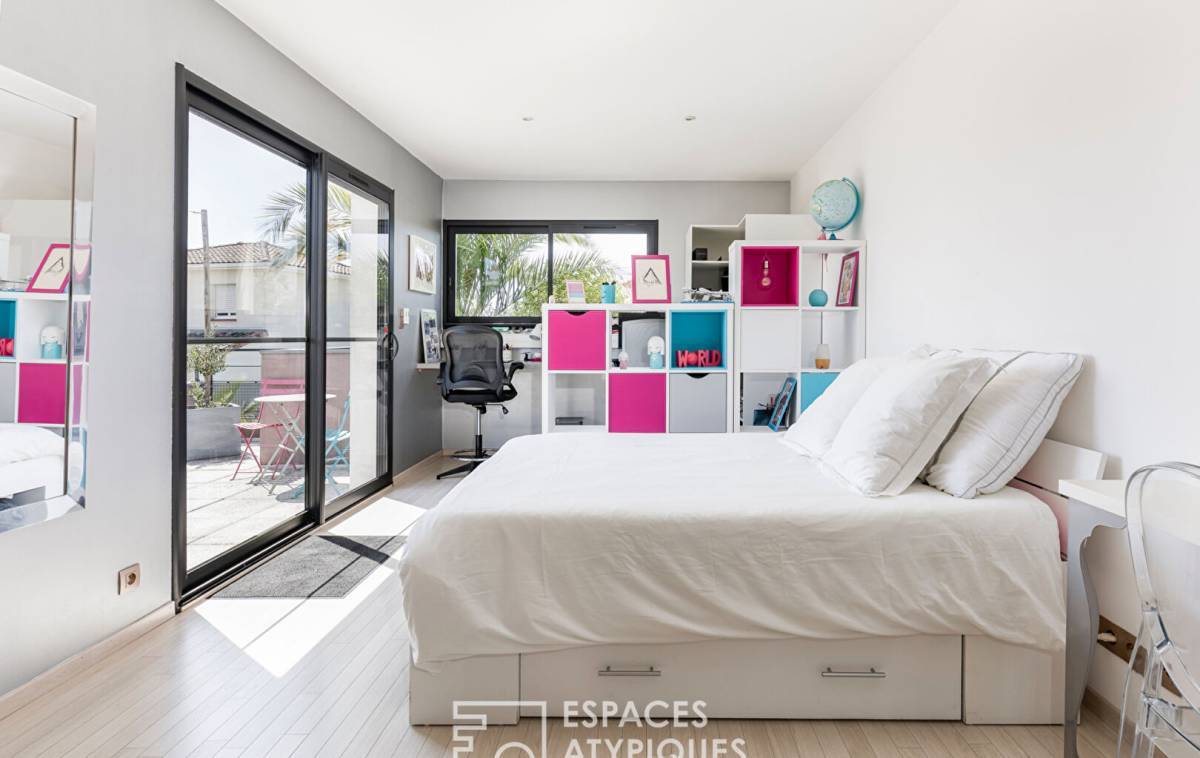 In the quiet of a residential street, this contemporary house offers 150 sqm of living space on a 500 sqm plot.