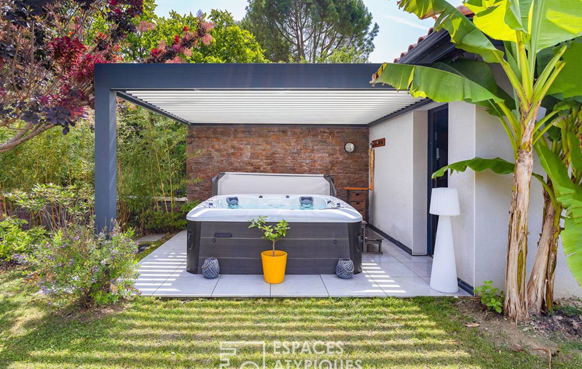 Located just 25km from Toulouse, in the sought-after town of Castenau d'Estretefonds, this 196sqm house, built in the early 2000s, boasts a peaceful living environment, beautiful natural light, and a resolutely outdoor lifestyle. Developed largely on one level, the house is organized around a vast 81sqm living room bathed in light, punctuated by high ceilings and a large open fireplace. The fully open kitchen, extended by a utility room, contributes to this omnipresent conviviality. Large openings invite relaxation and create a subtle dialogue between indoors and outdoors, with direct access to the numerous terraces and the garden. The sleeping area consists of two bedrooms with storage, which share a bathroom. A master suite has its own bathroom with toilet. A large 35sqm mezzanine overlooks the living room and can accommodate an office, a relaxation area, or an extra bedroom, depending on your needs. Outside, the atmosphere is that of a vacation home. Several terraces, some covered, others open, allow you to enjoy beautiful exposure at any time of the day. The swimming pool and the manicured garden invite you to relax, while a perfectly designed wellness area completes the ensemble: healthy with a light therapy shower, a jacuzzi sheltered under a bioclimatic pergola. A 27sqm garage with a laundry room completes this property. Located in a quiet environment, the house benefits from a view of the plain of northern Toulouse. A warm and peaceful living space, where everything has been designed for daily comfort, serenity, and well-being. Underfloor heating - Air/Water heat pump Reversible air conditioning - Air/Air South exposure Jacuzzi 2.23 x 2.23 Sauna 1.50 x 1.50 ENERGY CLASS: B / CLIMATE CLASS: A Estimated average amount of annual energy expenditure for standard use, established from 2021 energy prices: between EUR1,582 and EUR2,140. Information on the risks to which this property is exposed is available on the Géorisques website Sales agent: Clément Lagarde - EI - RSAC number 903 635 464 - 06 50 13 38 59