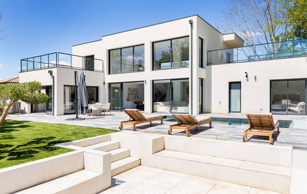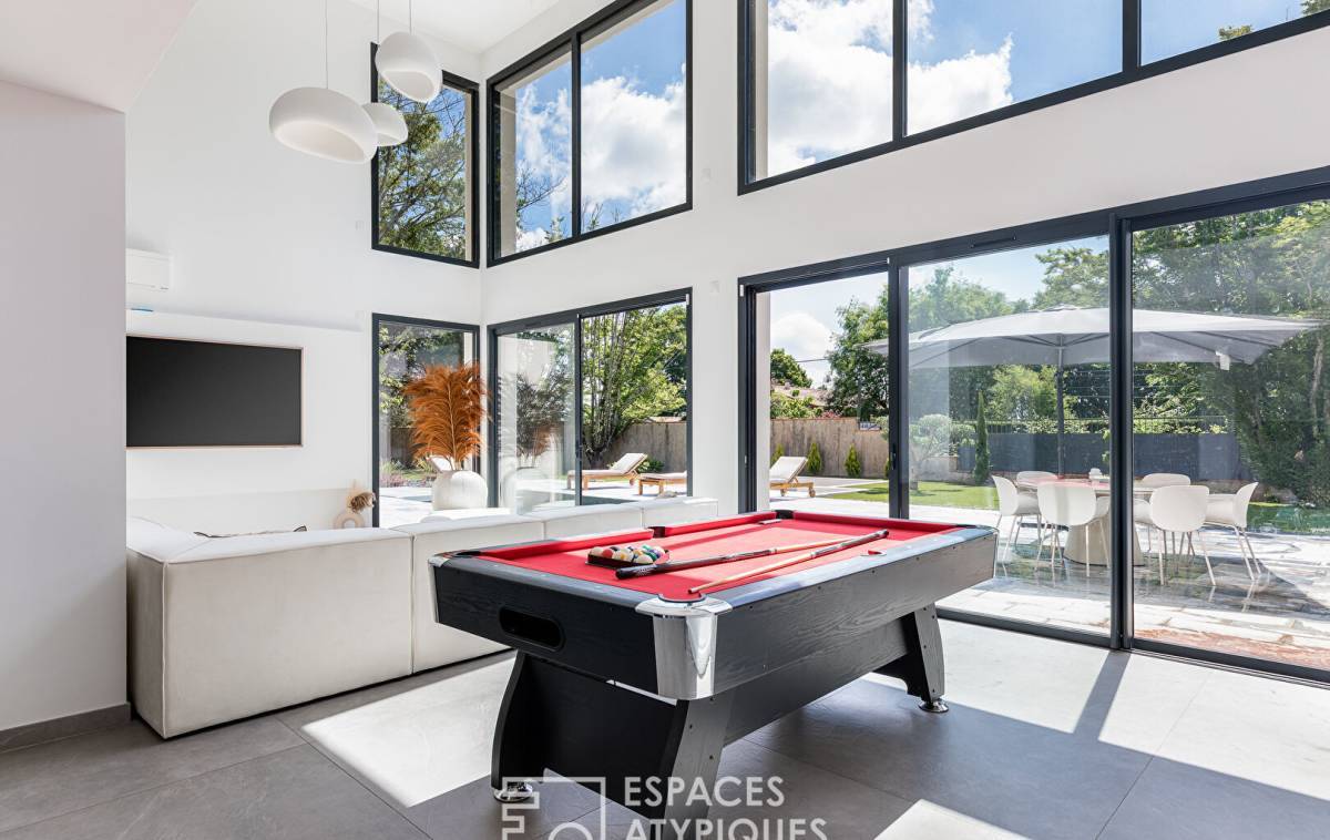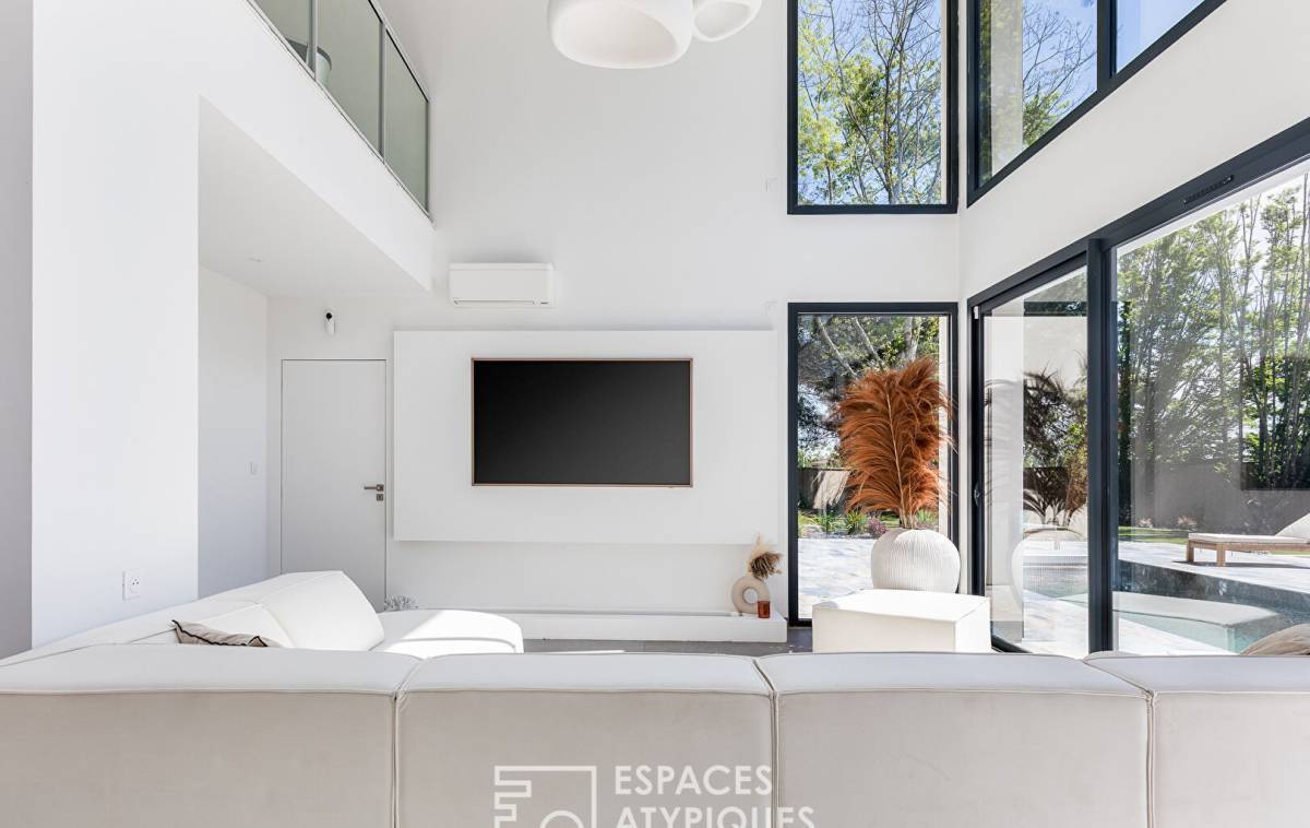 This rare living environment, blending modernity and nature, gives this property a certain charm and an exceptional quality of life. With its resolutely contemporary architecture, impressive volumes, high-end amenities, and bright living spaces, this house seduces with its atypical character.