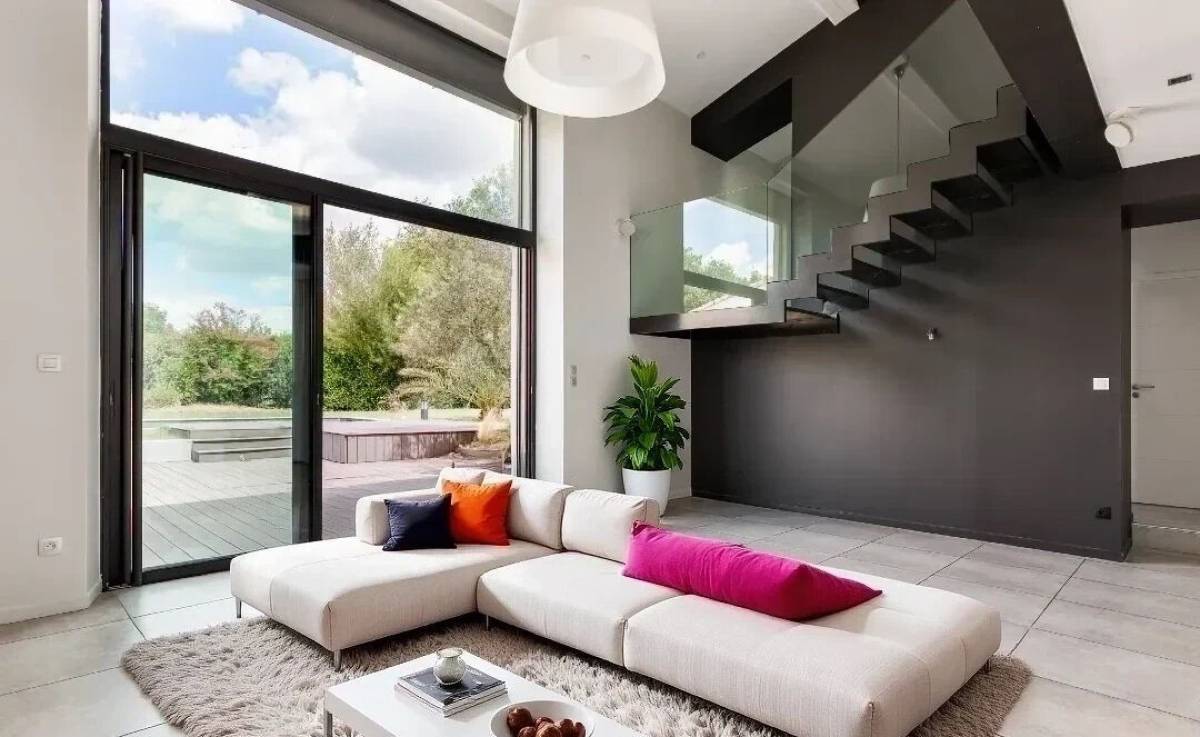 Located in Villefranche-de-Lauragais, this contemporary house with 2,630 square feet of floor space (1,950 square feet of living space) is set in a quiet, green environment just twenty minutes from Toulouse.