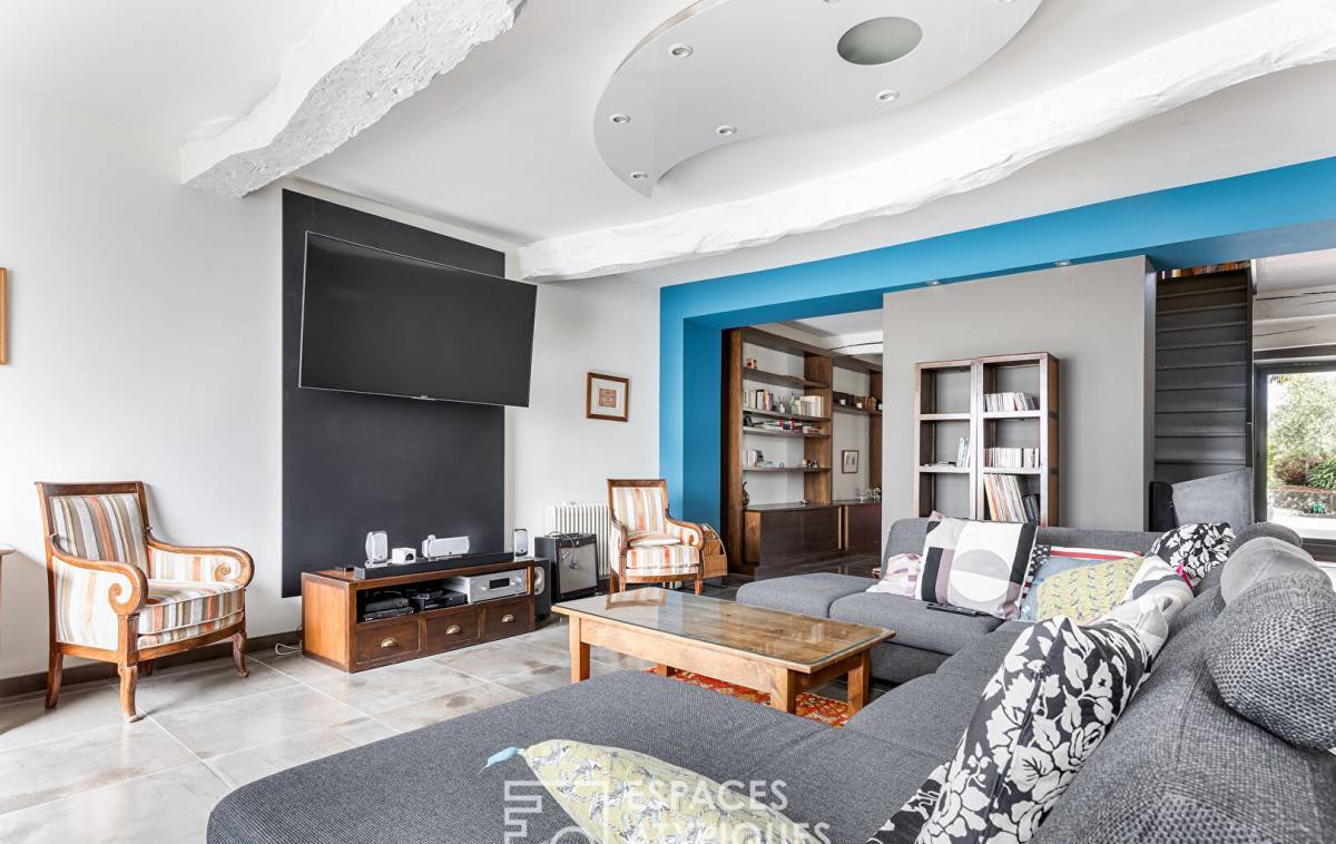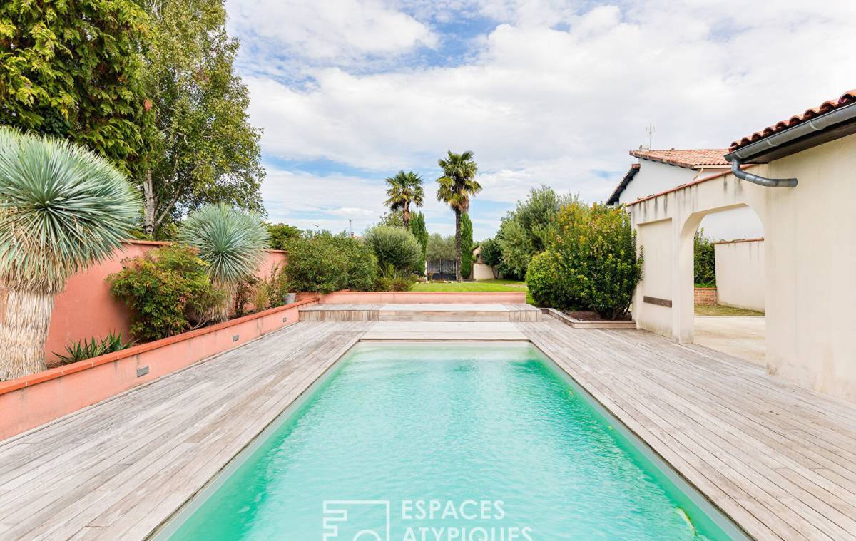 In the heart of Cornebarrieu, this 306sqm townhouse has been completely renovated with quality materials and offers generous volumes, all on a 1300sqm plot. Upon entering, a large 70sqm living/dining room offers comfort and character. This is followed by a separate, equipped kitchen, in which the old bread oven is located, the door of which has been preserved. A pantry/scullery provides additional storage. A bathroom completes the ground floor. Upstairs, a stone-adorned hallway leads to the various rooms. Four beautiful bedrooms, with generous volumes, a shower room, a dressing room, and a bathroom are located. Several outbuildings complete the main house: a bedroom with a shower room, a room with a mezzanine, and a large storage space. The exterior is not left out, the house is built around a landscaped courtyard/terrace. This is followed by the pool area, with a wooden terrace surrounded by palm trees, then the wooded park, which has several fruit trees such as a cherry tree, a fig tree, etc. Double insulated and tiled garage. Reversible air conditioning. 8x4 salt pool. Cleaned roof. Airbus - 8km Blagnac Airport - 4.5km Capitole de Toulouse - 14km Lycée International Victor Hugo - 6.6km This townhouse is the ideal place to live for city dwellers looking for peace and quiet, close to all amenities, in a renovated house with character. ENERGY CLASS: C / CLIMATE CLASS: A - Estimated average amount of annual energy expenditure for standard use, based on 2021 energy prices: between EUR2,920 and EUR4,010. Information on the risks to which this property is exposed is available on the Géorisques website Sales agent: Alana Duvauchelle - EI - RSAC number 914 756 812 - 07 81 90 11 35