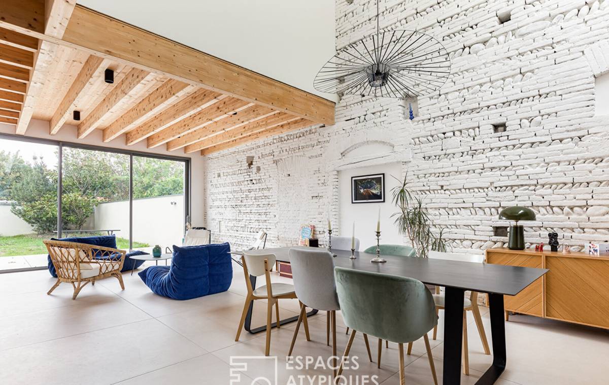 Just a few minutes from Toulouse and close to amenities, a unique 229sqm house has been built with bold architecture and timeless charm. It seduces as much by its volume as by its refinement. From the entrance, the tone is set: the exposed framework, elegantly crafted, highlights generous volumes and exceptional brightness. The spaces open onto a vast living-dining room in one piece, offering a feeling of floating and freedom. The kitchen, both discreet and perfectly integrated, seduces with its noble materials, its numerous storage spaces and its functional scullery. The ground floor also offers a bedroom now converted into a cinema room, as well as an office, ideal for combining comfort and teleworking. Upstairs, three spacious bedrooms share a generously sized bathroom, while a sumptuous master suite completes this level. Outside, a garden with a swimming pool offers a peaceful setting that can be adapted to suit your needs. A double garage completes this rare and unique property. Equipped with a modern home automation system, this house, a perfect combination of authenticity and innovation, is a true invitation to the good life. ENERGY Class: A / CLIMATE Class: A Estimated average amount of annual energy expenditure for standard use, based on 2021 energy prices: between EUR940 and EUR1,350. Information on the risks to which this property is exposed is available on the Géorisques website Sales agent: Marine Andrieu - EI - RSAC number 517 891 453 - 07 84 5 23 49