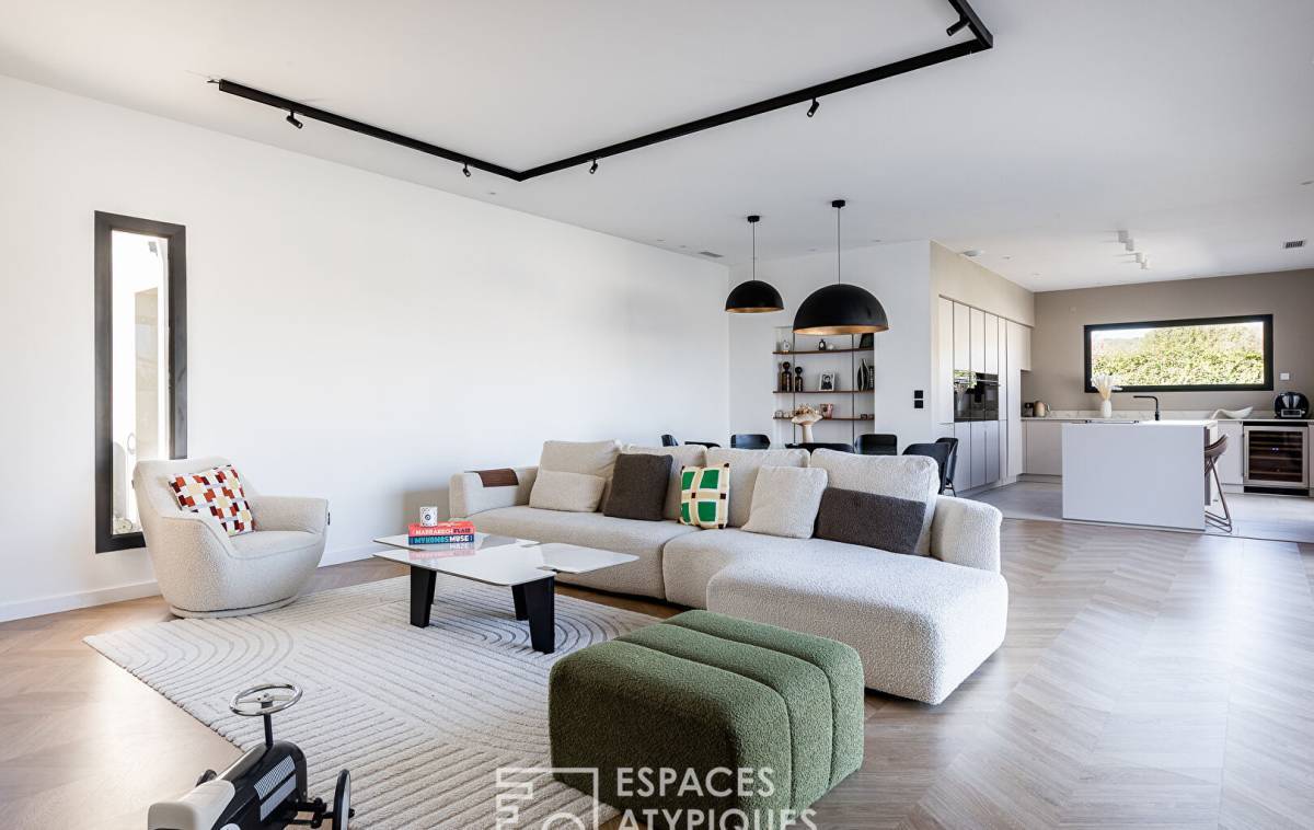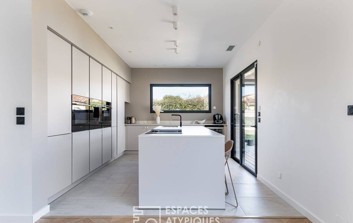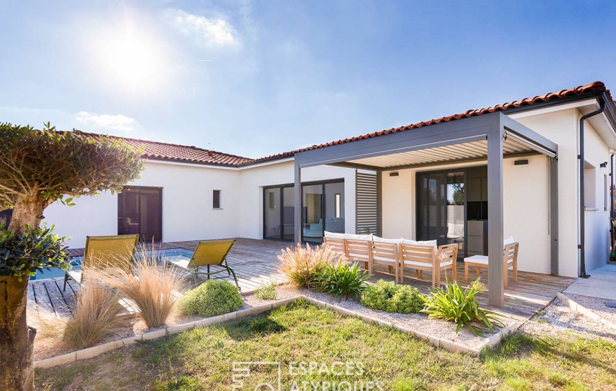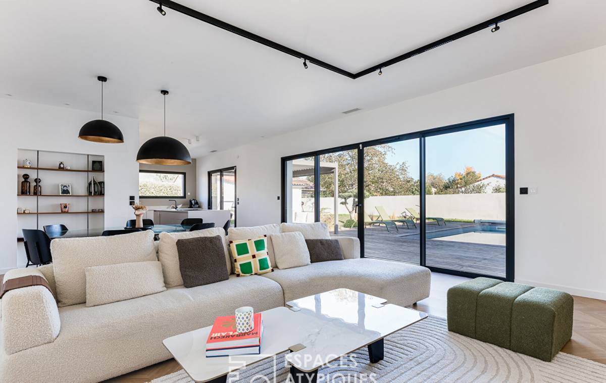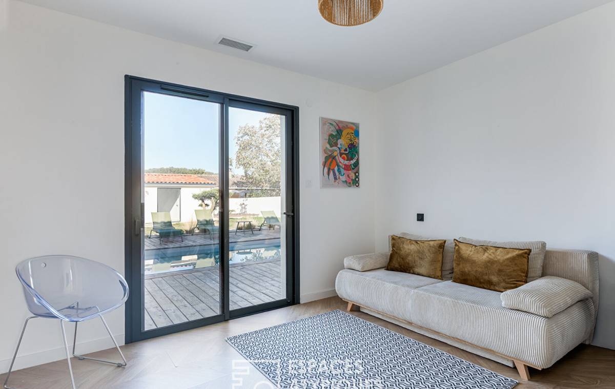 Located in Buzet-sur-Tarn, 20 minutes from Toulouse, this contemporary single-story house of approximately 188 sqm of living space impresses with its generous proportions and perfect functionality. Built in 2023, it offers high-quality features, all set on a landscaped plot of approximately 900 sqm, offering complete privacy. From the moment you enter, the tone is set: clean lines, abundant natural light, and a seamless flow of spaces. The living area, bathed in light thanks to large bay windows, is centered around a welcoming living room opening onto a fully equipped, modern kitchen. The fluid circulation and meticulous finishes reveal a design conceived for both everyday living and entertaining. A utility room is located behind the kitchen, providing access to the garage. The separate sleeping area comprises four bedrooms, including a master suite with a dressing room and private bathroom. The three other bedrooms, equally bright and spacious, share a contemporary bathroom. Outside, the wooden terrace harmoniously frames a swimming pool extended by an elegant pool house. This independent space, equipped with a shower room, can easily serve as a gym, workshop, or guest room, depending on your needs. Facing south, the entire property invites relaxation in complete tranquility. The enclosed, low-maintenance garden creates a haven of peace within easy reach of amenities, schools, and major roads leading to Toulouse. Designed for everyday comfort, the house offers modern features: reversible air conditioning, aluminum window and door frames, home automation, high-performance insulation, and quality materials. This recently built villa is ideal for those seeking a modern, easy-to-live-in family home that opens onto the outdoors, close to amenities, schools, and major roads leading to Toulouse. ENERGY RATING: A / CLIMATE RATING: A Estimated average annual energy costs for standard use, based on 2024 energy prices: between EUR760 and EUR1,080. Information on the risks to which this property is exposed is available on the Géorisques website: Sales Agent: Mathieu MAUPEU - Sole Proprietorship - RSAC number 911 000 347 - Telephone: 33 6 15 24 39 66