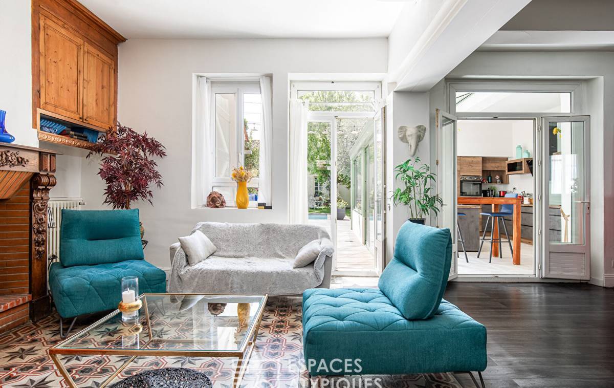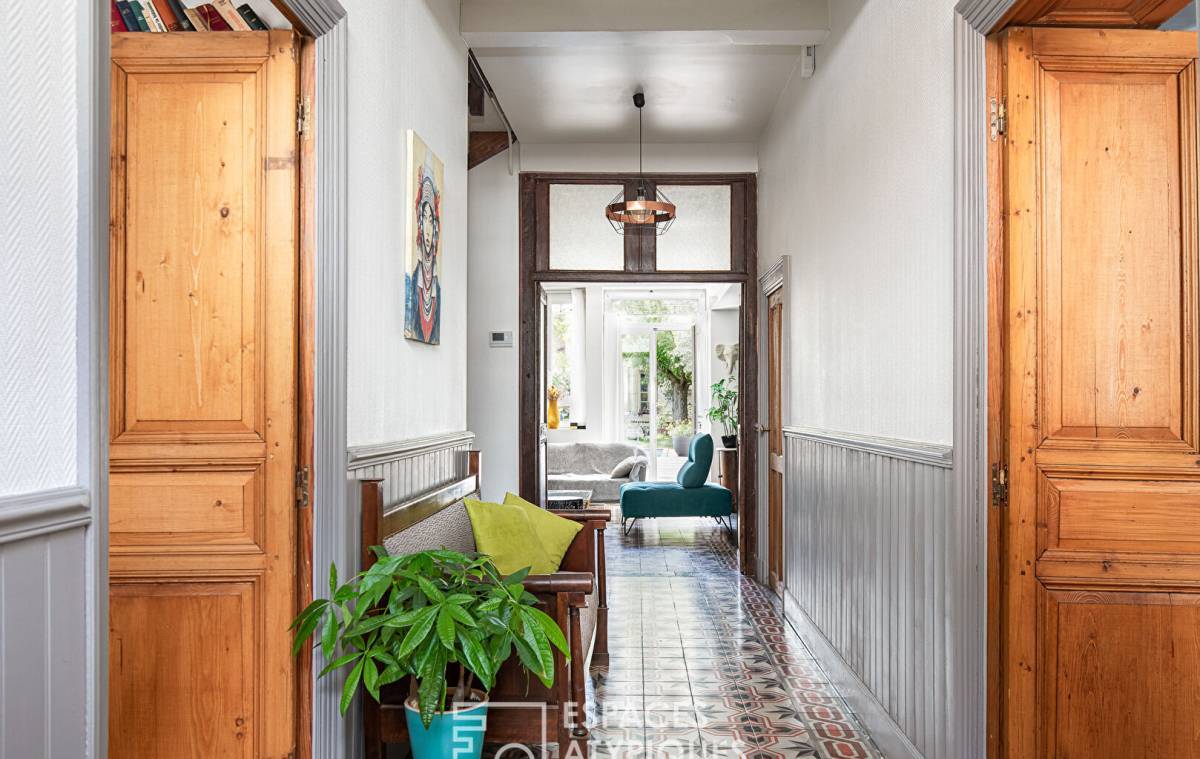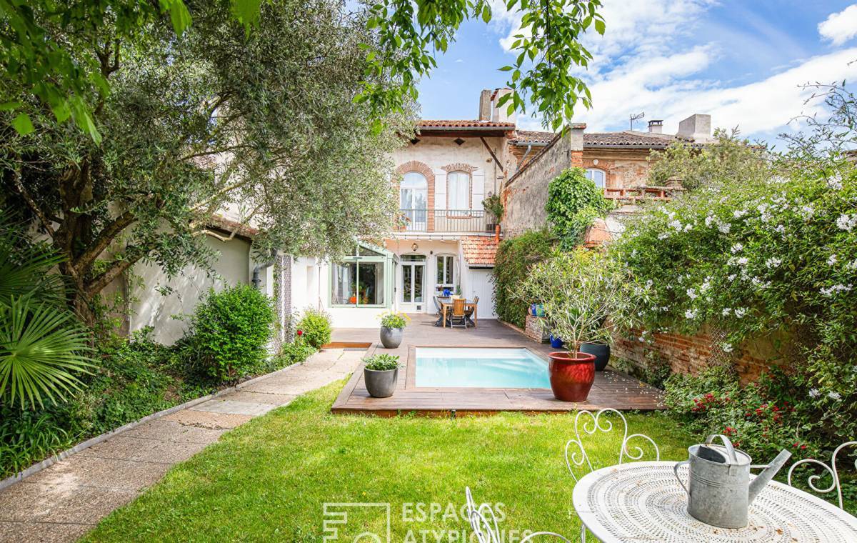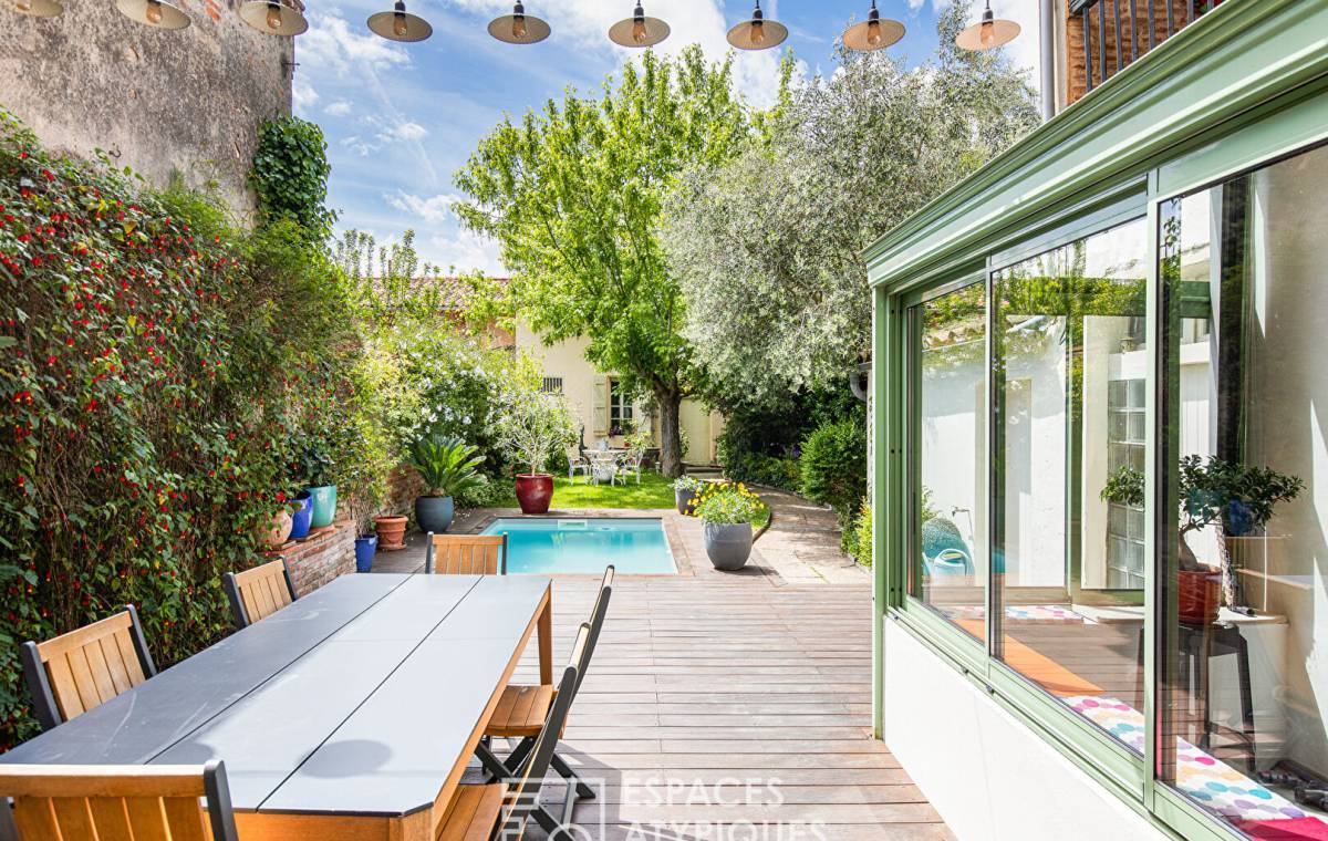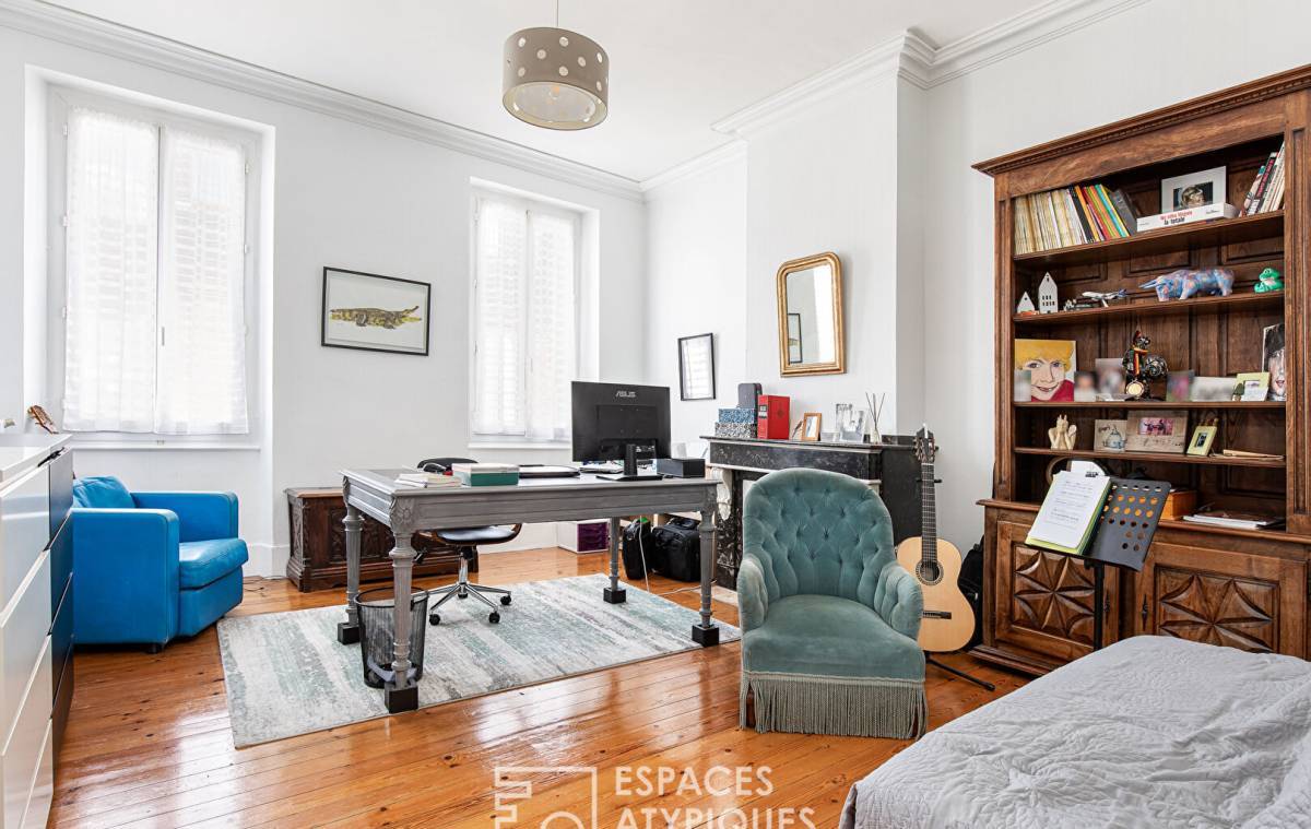 Located in the heart of the market halls of Granada, this characterful residence has recently been renovated. It has an area of approximately 322sqm and overlooks an intimate garden with terrace and swimming pool. The entrance opens onto a large corridor leading to all the living rooms bathed in light and with a strong identity. On the left side, a library space takes place. On the right side a first living room, which can be redesigned as a bedroom. Continuing, the living room and dining room open naturally onto the kitchen. Everything gives access to the terrace, thus extending the living space towards an intimate garden. The high ceilings, the solid parquet floors, the cement tiles, the carved wooden fireplace and the wood stove give all the authenticity and character to this beautiful residence. The upper floor, accessible by a beautiful staircase, serves the sleeping area. It consists of three bedrooms, one of which is used as an office. Each of these rooms is characterized by beautiful volumes, solid parquet flooring and its marble fireplace. A dressing room and a bathroom with shower and bathtub complete this level. The space on this floor is extended by a terrace, partly shaded, overlooking the garden. The top floor completes the expectations linked to this type of residence. It can be thought of as an independent space which accommodates a spacious bedroom, a bathroom as well as a large room of 42sqm currently fitted out as a gym. The exterior is not to be outdone and offers an idyllic and unobstructed setting. The terrace is continued by the heated swimming pool and a landscaped garden. To complete everything, this property offers a cellar as well as a 60sqm garage. The living environment in a calm environment, the volumes and the noble materials present make it an ideal character house for a primary and secondary residence. Gas boiler - Intermittency programming regulation system. Air conditioning on the top floor. Immediate proximity to shops and schools. SNCF train station and motorway accessible 10 minutes by car. Airport 20 minutes by car. Possibility of acquiring two T3 type apartments, currently rented, with garage, at an additional cost. ENERGY CLASS: C / CLIMATE CLASS: A Estimated average amount of annual energy expenditure for standard use, established based on energy prices for the year 2021: between EUR2,570 and EUR3,570. Information on the risks to which this property is exposed is available on the Géorisks website