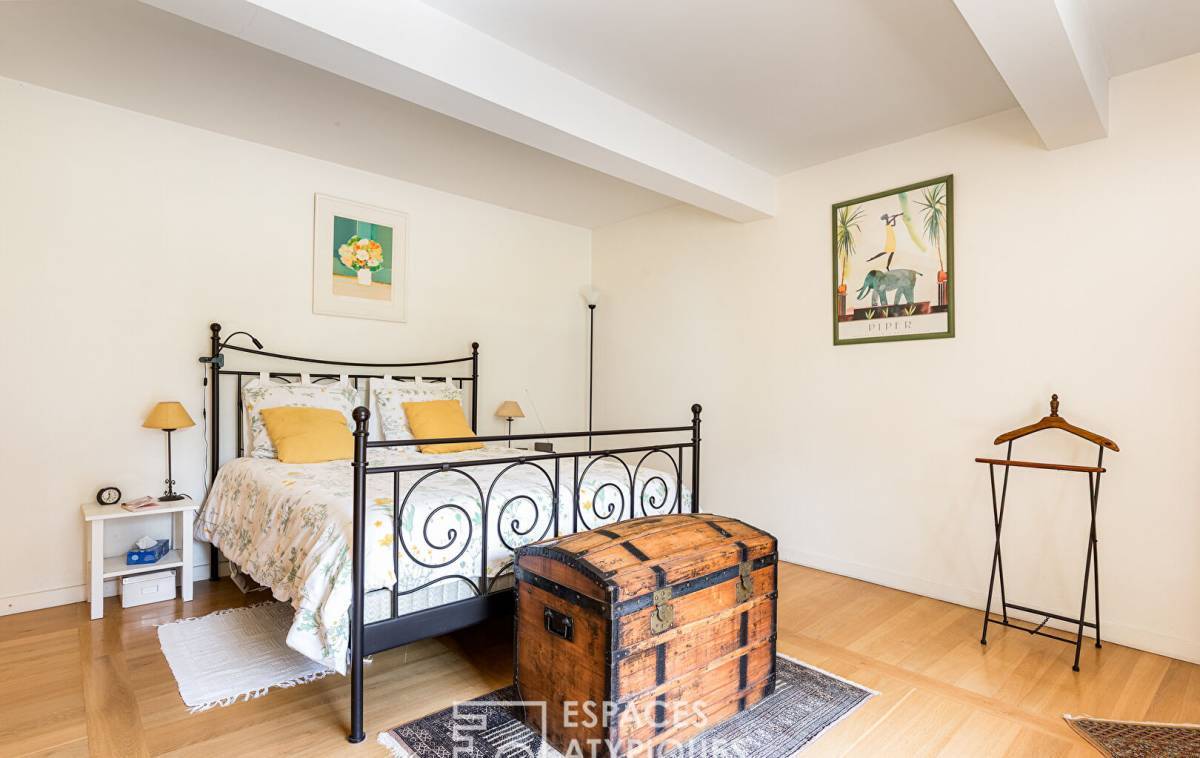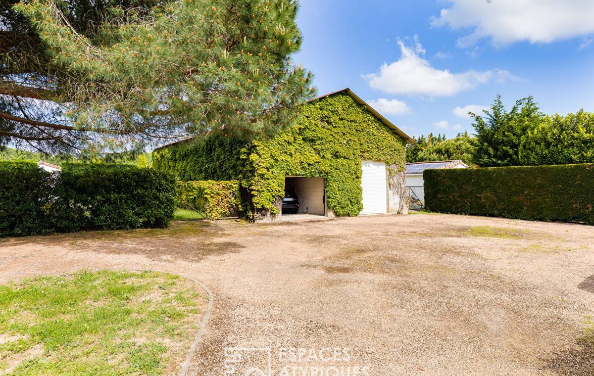 At the far end of the property, a wisteria-lined terrace is ideal for entertaining friends and family on a variety of occasions. An independent 200 m² hangar completes the property, offering multiple possibilities: parking, storage, collections, professional projects, ... depending on the project.