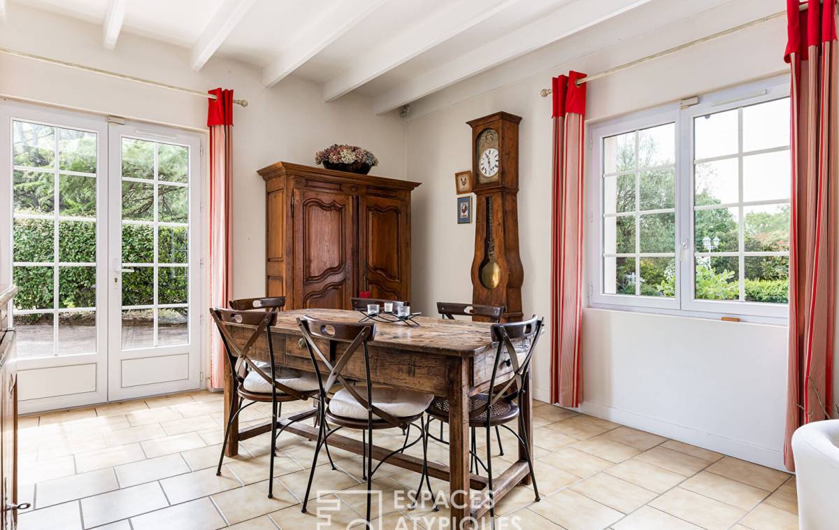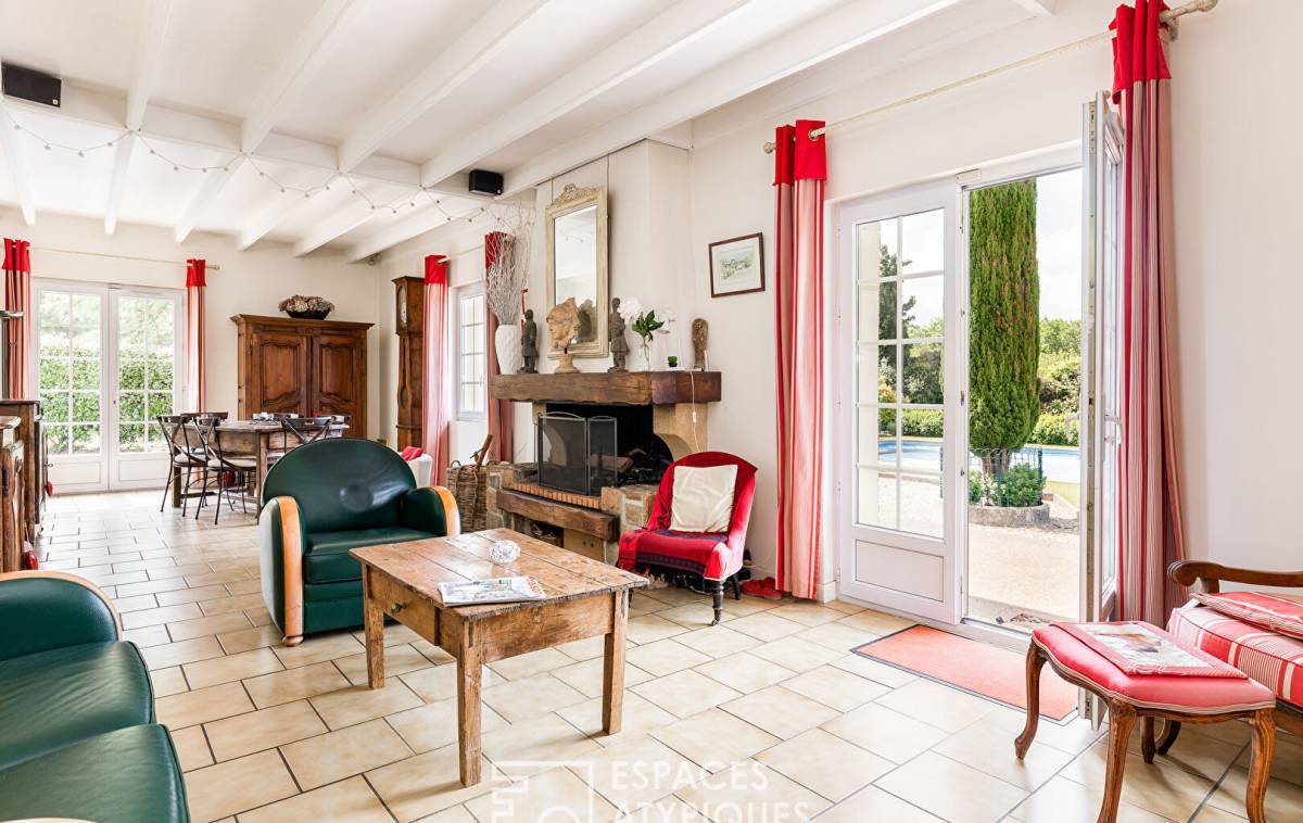 The heart of the house opens onto a bright, open-plan living room, complemented by a separate kitchen. Large windows invite you to enjoy the terraces surrounding the house, the saltwater swimming pool and the garden.