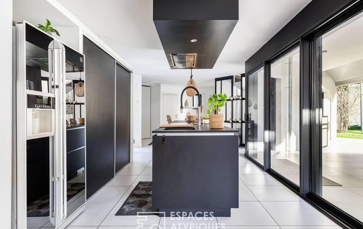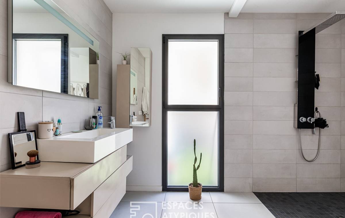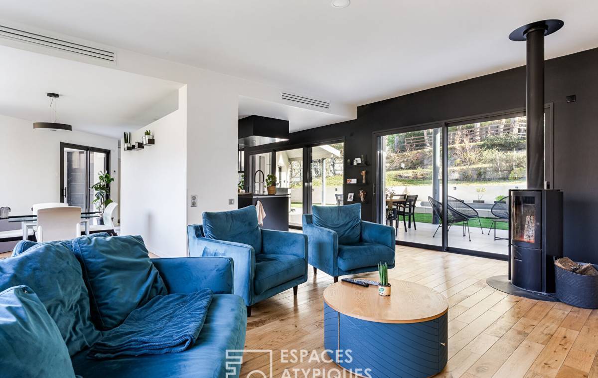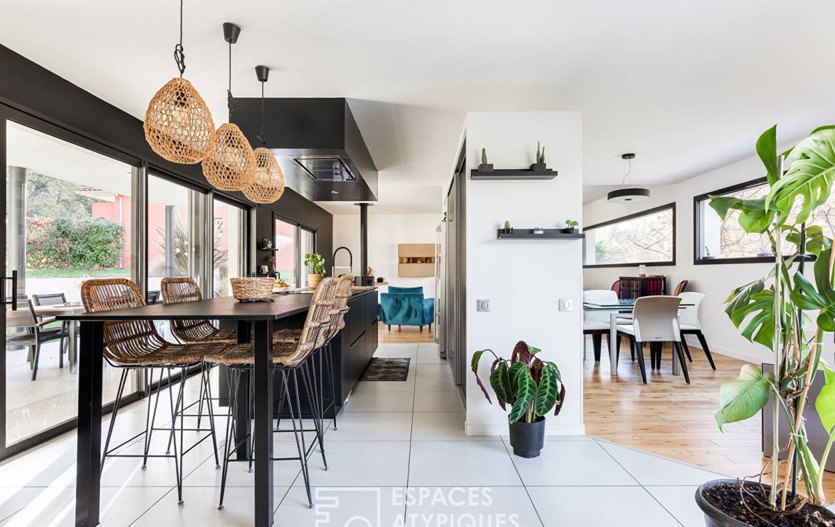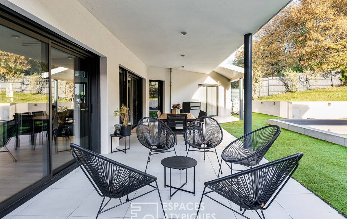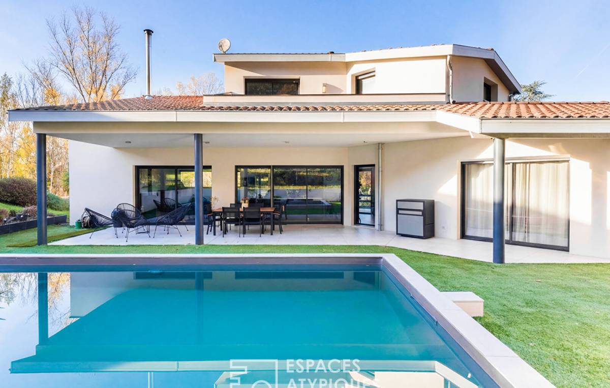 Located 19km from Toulouse, in the town of La Salvetat Saint Gilles, this splendid contemporary villa of approximately 172sqm, built in 2019, offers high-end amenities. The house sits on a plot of over 4,000sqm and enjoys a unique setting thanks to its unobstructed views of a wooded area and its peaceful location. From the moment you enter, the spaciousness is impressive, and light floods into every room. The open-plan living area of 75sqm features a fully equipped kitchen, a dining area, and a lounge with a wood-burning stove. Large windows throughout, opening onto the terrace, flood the space with natural light. On the same level, a master suite includes a large dressing room and a shower room. A separate WC completes this level. Upstairs, a mezzanine serves as an office and playroom, providing access to the other rooms. Two beautiful bedrooms, a shower room, a balcony, a solarium, and a separate WC follow. In the basement, the house benefits from a laundry room and a 57sqm insulated and tiled double garage. The exterior is the major asset of this house. Extending from the living room is a beautiful covered terrace of over 40sqm, ideal for entertaining. Beyond this lies the tastefully landscaped pool area and the wooded garden. Reversible air conditioning. Ten-year structural warranty. Abundant natural light. This house is the ideal home for nature lovers and those who appreciate contemporary style. Its location and features make it a truly unique property. Airbus - 13km Amenities - less than 5 minutes Colomiers International High School - 7km Schools, tennis club, etc. - less than 3km ENERGY RATING: A / CLIMATE RATING: A - Estimated average annual energy costs for standard use, based on 2021 energy prices: between EUR740 and EUR1,100. Information on the risks to which this property is exposed is available on the Géorisques website: Sales Agent: Alana Duvauchelle - Sole Proprietorship - RSAC number 914 756 812 - 33 7 81 90 11 35