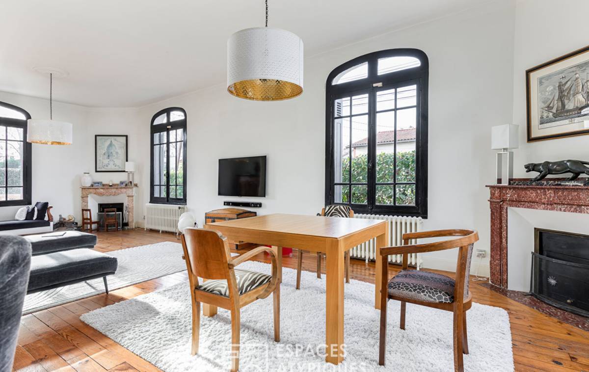 Located in Toulouse, in the Pont de Demoiselles district, this fully renovated 1930s family home elegantly blends period charm with contemporary comfort. Spanning over 180 square meters, it offers spacious, light-filled rooms enhanced by high ceilings and meticulous finishes. The expansive living room, featuring two period fireplaces and solid wood flooring, opens onto a sunny and intimate rooftop terrace, perfect for relaxation. The living area flows seamlessly into the recently renovated, modern, and fully equipped kitchen, creating a welcoming and fluid atmosphere. A ground-floor master suite with a large bathroom completes the ground floor. Upstairs, four bedrooms, one of which could be used as an office, along with a relaxation area or playroom, offer great flexibility for harmonious family living. Amenities include integrated air conditioning and a recent renovation that respects the original character of the building. A garden complete with a city swimming pool invites you to enjoy the outdoors. The garage provides parking for one vehicle and/or space for DIY projects, with a second parking space available on the property. The house sits on a crawl space that is accessible and can be used for storage. The prime location offers quick access to shops, public transport, and major roads, while maintaining a peaceful atmosphere. Metro 10-minute walk, Shops and schools 5-minute walk, Motorway access 3-minute drive, Saint Joseph and Caousou schools 13-minute drive or public transport ride. Energy rating: D / Climate rating: D. Estimated average annual energy costs for standard use, based on 2021 energy prices: EUR2,509. Information on the risks to which this property is exposed is available on the Géorisques website: . Sales agent: Marina SANCHEZ - Sole Proprietorship RSAC number 932 117 831 - 33 6 66 24 80 45