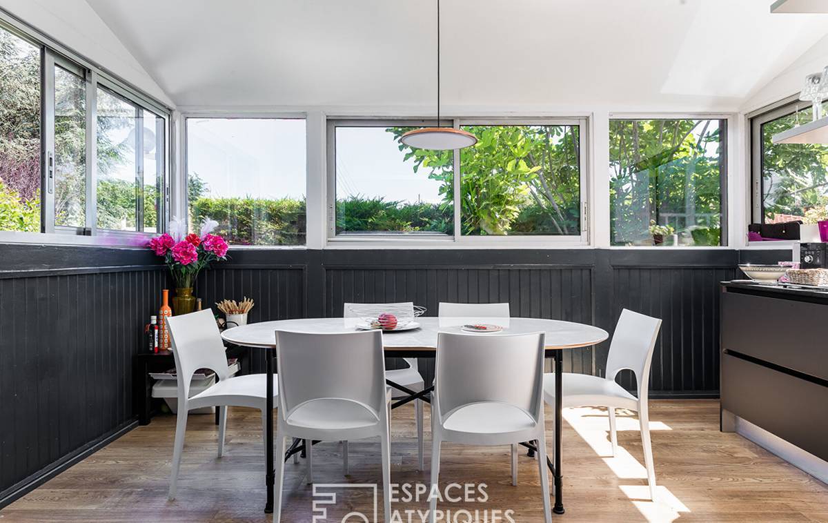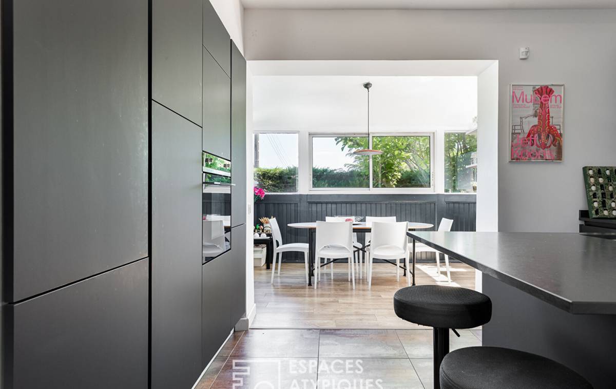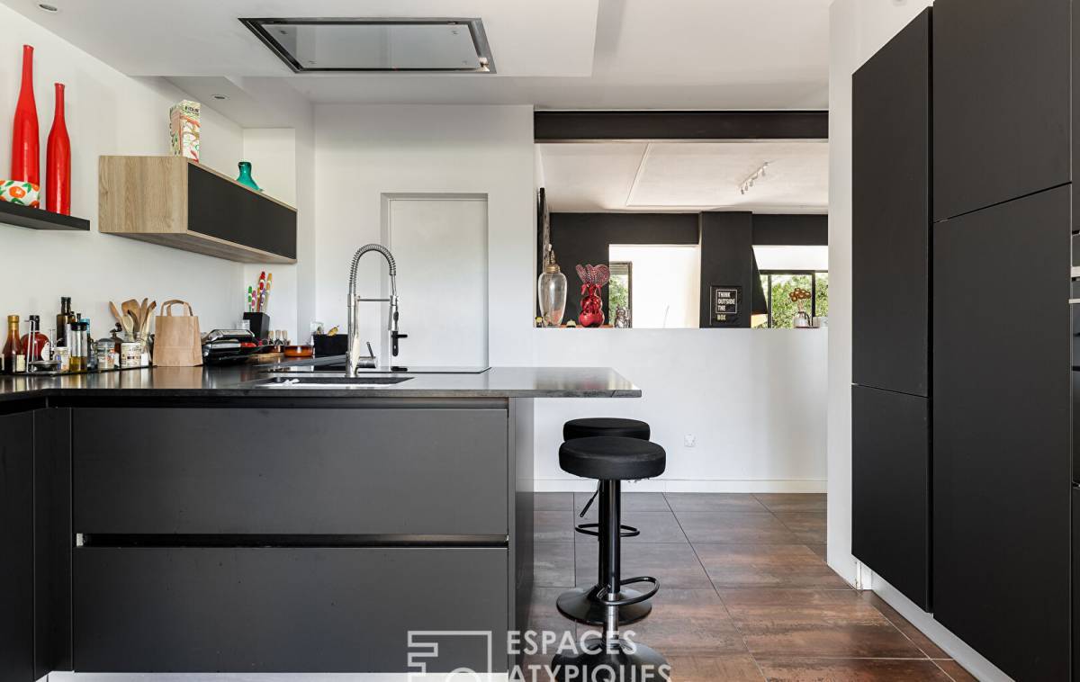 Located in the heart of Balma, in a quiet setting, this decidedly atypical house offers 204sqm of living space, built on a 537sqm plot. Designed to offer comfort, functionality, and aesthetics. From the entrance, the flow flows naturally into a beautiful living room where the volumes are optimized. Light generously flows through the space thanks to large openings opening directly onto the garden. The open kitchen, perfectly integrated, extends the reception area, creating a welcoming place for everyday life. The sleeping area consists of five bedrooms spread between the ground floor and the upper floor, allowing for a true separation of spaces and preserved privacy. A master bedroom, on the ground floor, has its own bathroom and dressing room. Bold color choices in the bathrooms and bedrooms bring a strong identity to each volume, without ever weighing down the overall effect. Outside, a private, wooded garden features a swimming pool elegantly integrated into the vegetation. A wooden deck surrounds the pool, providing an ideal relaxation area for sunny days. The property also benefits from several additional spaces that can be used as an office, dressing room, or leisure area depending on needs. A garage completes the property. The finishes are meticulous, the materials are tastefully chosen, and the whole exudes a warm and contemporary atmosphere. This house will appeal to families seeking peace and comfort, as well as lovers of unique places wishing to settle in a neat and confidential setting, close to amenities. Balma Church and metro line A are 5 minutes away. Access to the ring road and highway is 5 minutes away. Close to schools, middle schools, and high schools. Information on the risks to which this property is exposed is available on the Géorisques website Commercial agent: Louis BEILLARD - EI - RSAC number 849 902 267- 06 71 39 13 83