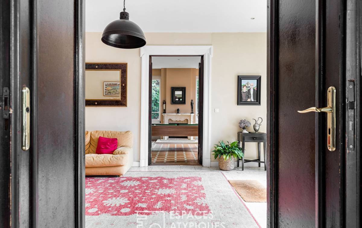 Outside, a landscaped park and its century-old trees of more than 6000 sqm with heated swimming pool and sunny terrace, invite you to relax and host outdoor events. This property benefits from the proximity of amenities and transport links, guaranteeing easy access while preserving tranquility.