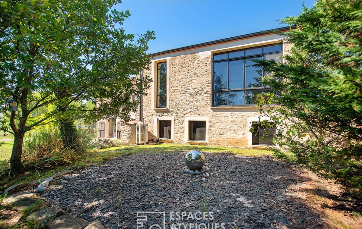 Near Saint Juery, this true paradise for lovers of nature, peace, and space is sure to be a hit. Located in the heart of the countryside, yet just a 5-minute drive from amenities, the property is nestled in the heart of a 2.8-hectare fenced plot surrounded by meadows. The main asset of this property is undoubtedly its unobstructed 360° view. But that's obviously not its only argument for creating a real favorite here. This early 19th-century property is composed of two parts. The first, 200sqm, is currently dedicated to the main residence. Here, charm and character coexist wonderfully thanks to a tastefully renovated property. The living room of over 100sqm with open kitchen is very welcoming with its impressive wood-burning stove, stone walls, stone and terracotta flooring, and its beautiful marble staircase leading to the sleeping area. Upstairs, four bedrooms and two bathrooms complete the space. Adjoining this main part is a former 350sqm barn, completely renovated in 2018 in a contemporary and refined style. Here too, the volumes are impressive, the possibilities multiple. A living room with an open kitchen, four bedrooms and two bathrooms allow for a possible accommodation activity. Upstairs, an impressive 90sqm room with high ceilings, beams and stone walls offers an unobstructed view of the surrounding countryside. A place of calm and plenitude that suggests a whole host of projects. The upper floor also houses three other rooms that can be used as offices or bedrooms according to the needs of each. Most of the rooms have large openings to the outside to take advantage of the breathtaking panorama. The exterior is not left out with several cozy spaces arranged on terraces, to the north and south to be enjoyed throughout the day. A 27sqm yurt reinforces the unique character of the property. The authentic charm of the building combined with the modern comfort and contemporary feel of the barn make this property a unique property in the area where you'll soon fall in love. Decorative and architectural elements such as magnificent doors sourced from around the world, as well as a complete renovation using quality materials, will accentuate this feeling. Underfloor heating by heat pump and reversible air conditioning Complete renovation of the whole 360° unobstructed view Parking Registered ruin of 70 sqm Saint Juéry: 8 minutes Albi: 20 minutes Toulouse: 1 hour ENERGY CLASS: B / CLIMATE CLASS: A Estimated average amount of annual energy expenditure for standard use, based on average indexed energy prices for 2021, 2022 and 2023: between 3,010 and 4,120 euros Information on the risks to which this property is exposed is available on the Géorisques website: