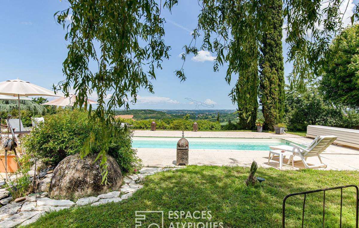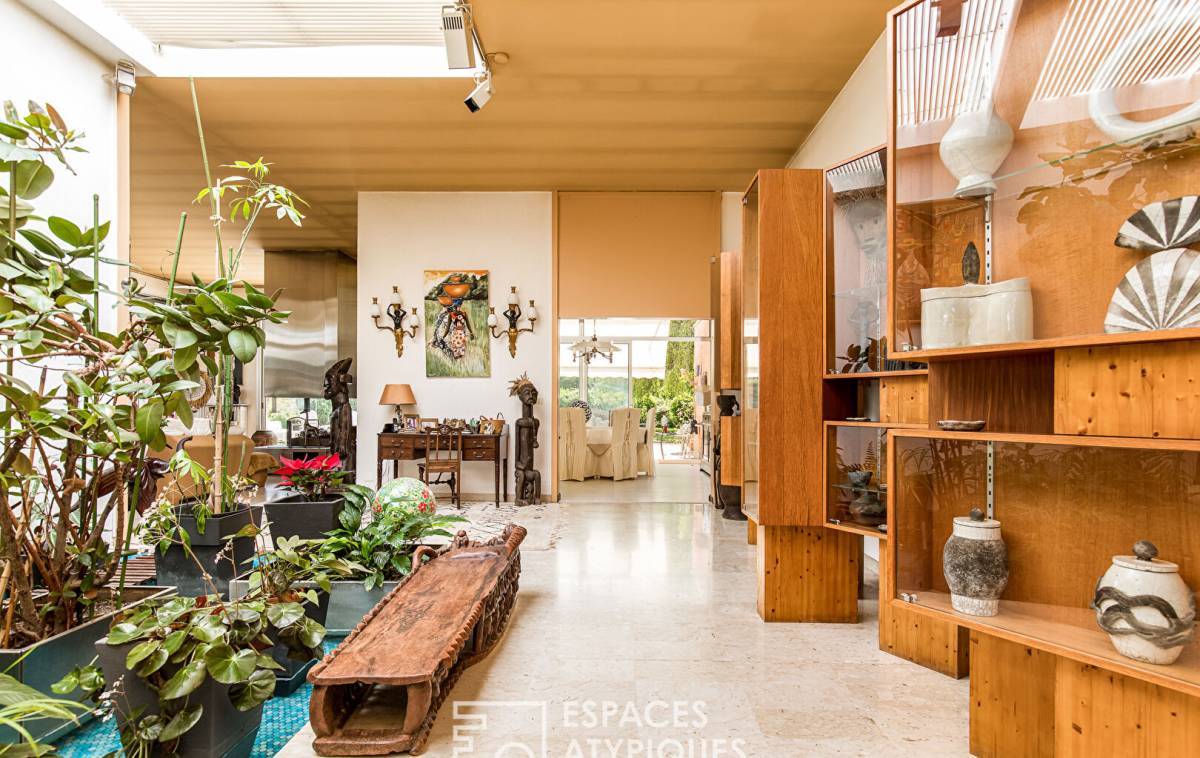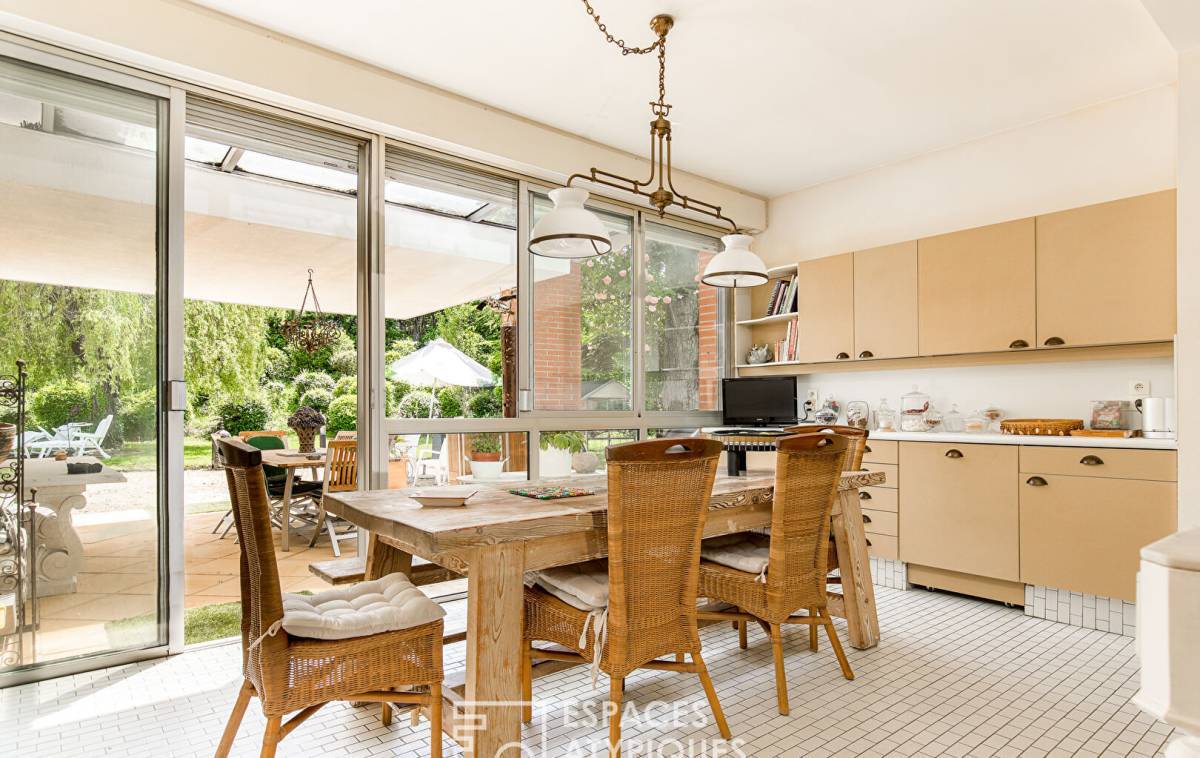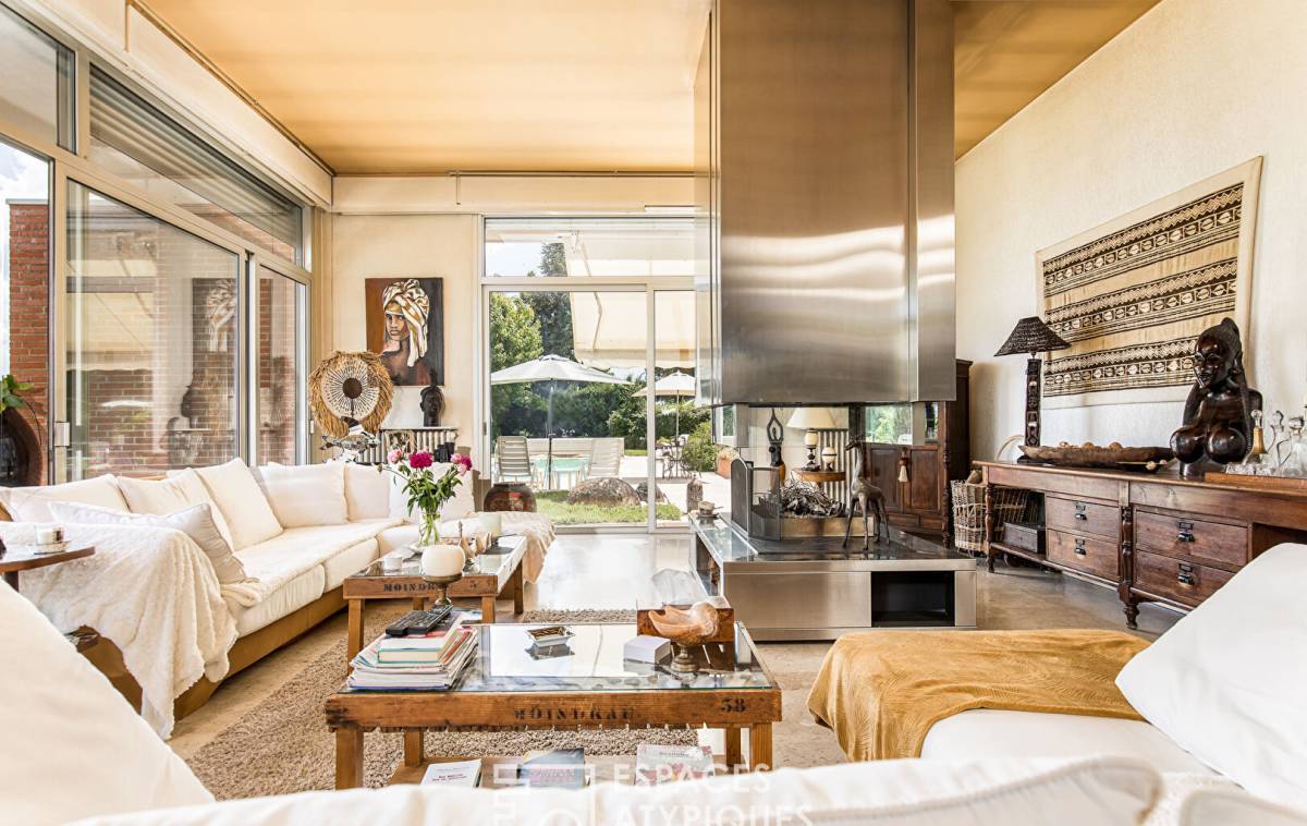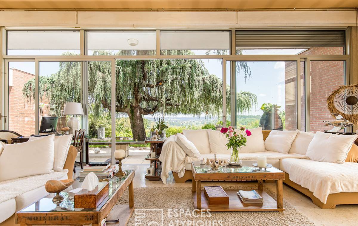In the heart of a preserved environment, this architect-designed villa offers an unobstructed 180-degree view. Built in the 1970s, this original and innovative construction for the time offers more than 350 sqm of living space and just as much in the basement, allowing for new opportunities. The volumes are striking as soon as you pass the front door. A large hall with pond leads to the double living room with fireplace and the dining room. Large openings bring the outside inside. The independent family kitchen opens onto a covered terrace. In contrast, a wing of the house is devoted to sleeping rooms, of which there are four, two of which are en suite. Integrated into lush nature, the heated swimming pool will offer optimal relaxation. Multiple furnished outdoor spaces will allow you to fully enjoy the garden in complete peace and quiet. Double motorized garage and basement Oil heating ENERGY CLASS: E / CLIMATE CLASS: G Average amount of annual energy expenditure for standard use, established from 2015 energy prices: EUR7,712 (actual consumption owners: EUR6,000) Information on the risks to which this property is exposed is available on the Géorisks website: