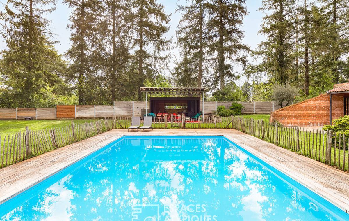 Located in a sought-after area of Albi, just 5 minutes from the city center and close to the golf course, this magnificent architect-designed house from the late 1980s offers 327 sqm of living space. Designed to combine comfort and style, it stands out for its bioclimatic architecture and high-end materials. This unique and unexpected property offers a calm and bright living environment, ideal for those seeking tranquility while remaining close to urban amenities. The interior space comprises generous volumes. The living areas total approximately 120 sqm. They include a spacious living room with an open fireplace and large sliding glass doors, providing direct access to the terrace and garden. A second, more intimate living room on a lower level creates a warm and welcoming atmosphere. The glazed extension, reminiscent of a conservatory, houses the dining room and a professional kitchen equipped with top-of-the-range appliances. The house has four bedrooms, including a 35 sqm master suite, offering optimal comfort. A separate shower room, an office, and an additional dressing room complete the space. The central patio, the true heart of the house, boasts lush vegetation and a fountain. It features opening panels, adding a touch of serenity to the overall design. This exceptional property offers incredible views from every room. Large windows allow you to enjoy the surrounding nature and create veritable living paintings that evolve with the seasons. The property is nestled in the heart of a landscaped park of over 7,000 sqm, offering complete privacy and tranquility away from the hustle and bustle of the city. The pool house, equipped with a bar, barbecue, and a lovely terrace, along with the 12 x 6 meter swimming pool, provides an ideal setting for relaxation. A 35 sqm wellness area, including a gym, spa, sauna, and shower, completes this exceptional property. The large 87 sqm garage easily accommodates four vehicles. A 30 sqm air-conditioned wine cellar, accessible via a small secret passage, will delight wine lovers. Electric heating and fireplace / Thermodynamic water heater / Aluminum double glazing / 12x6 m swimming pool (chlorine, new liner) / Automatic watering system / Albi city center: 5 min / Ring road access: 5 min / Toulouse: 50 min / ENERGY RATING: D / CLIMATE RATING: B / Estimated average annual energy costs for standard use, based on energy prices for 2021, 2022, and 2023: between EUR6,000 and EUR8,170. Information on the risks to which this property is exposed is available on the Géorisques website: