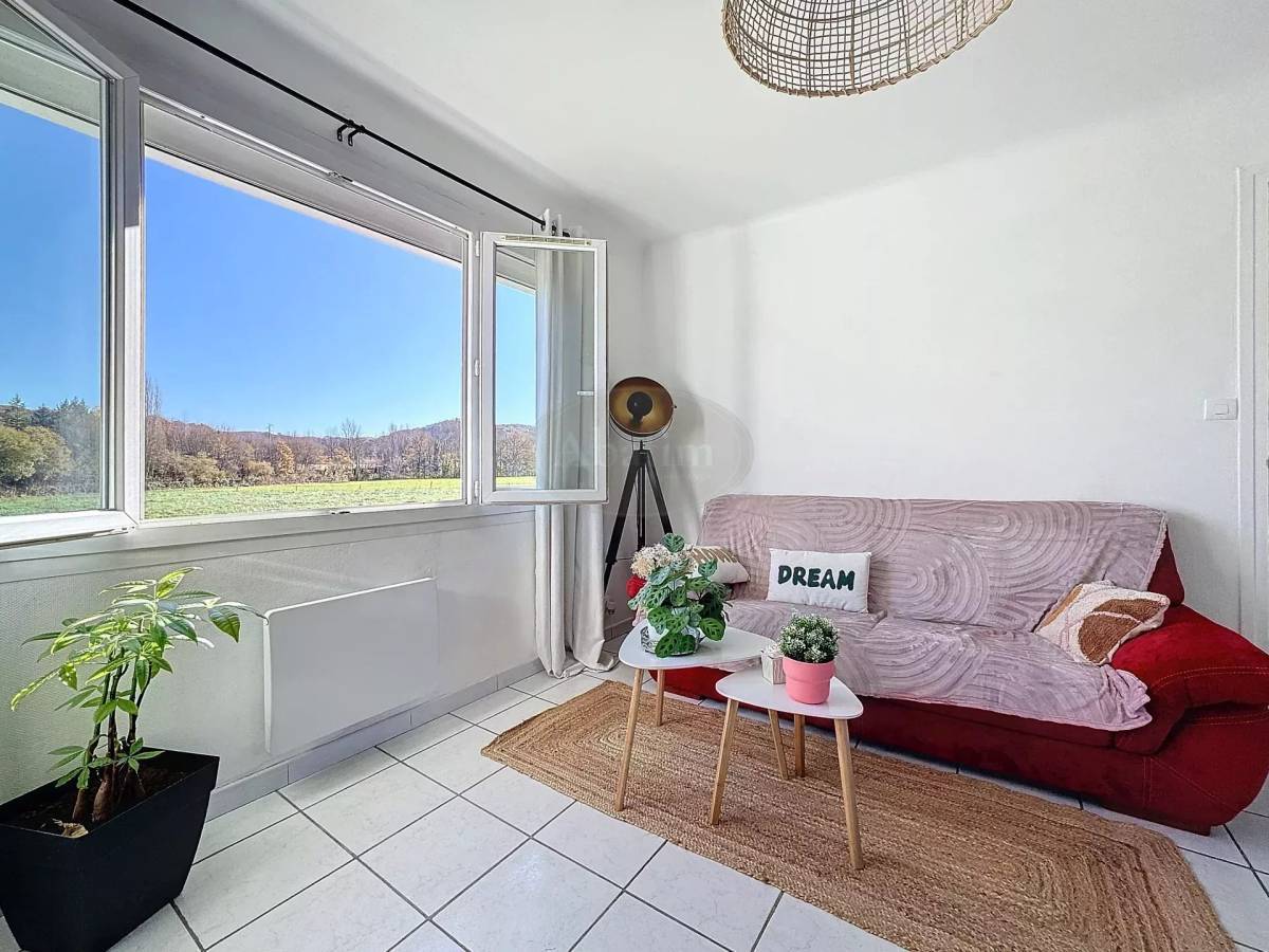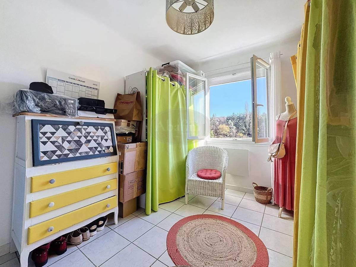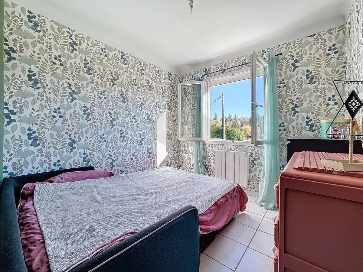 A bright living room is to the right of the entrance hall. The open-plan kitchen has several cupboards and lovely views of the hills.