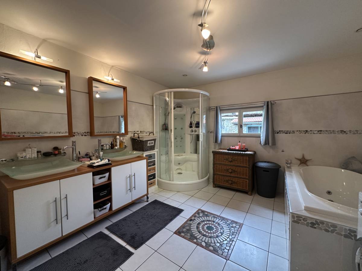 13 km from Jonzac? South Charente-Maritime Nestled in a small, peaceful hamlet, this stone Charentaise of approximately 182 m2 of living space welcomes you into a warm and bright atmosphere. The tone is set from the moment you enter: a cathedral-style living room with a fireplace, generous volumes, and an authentic feel.