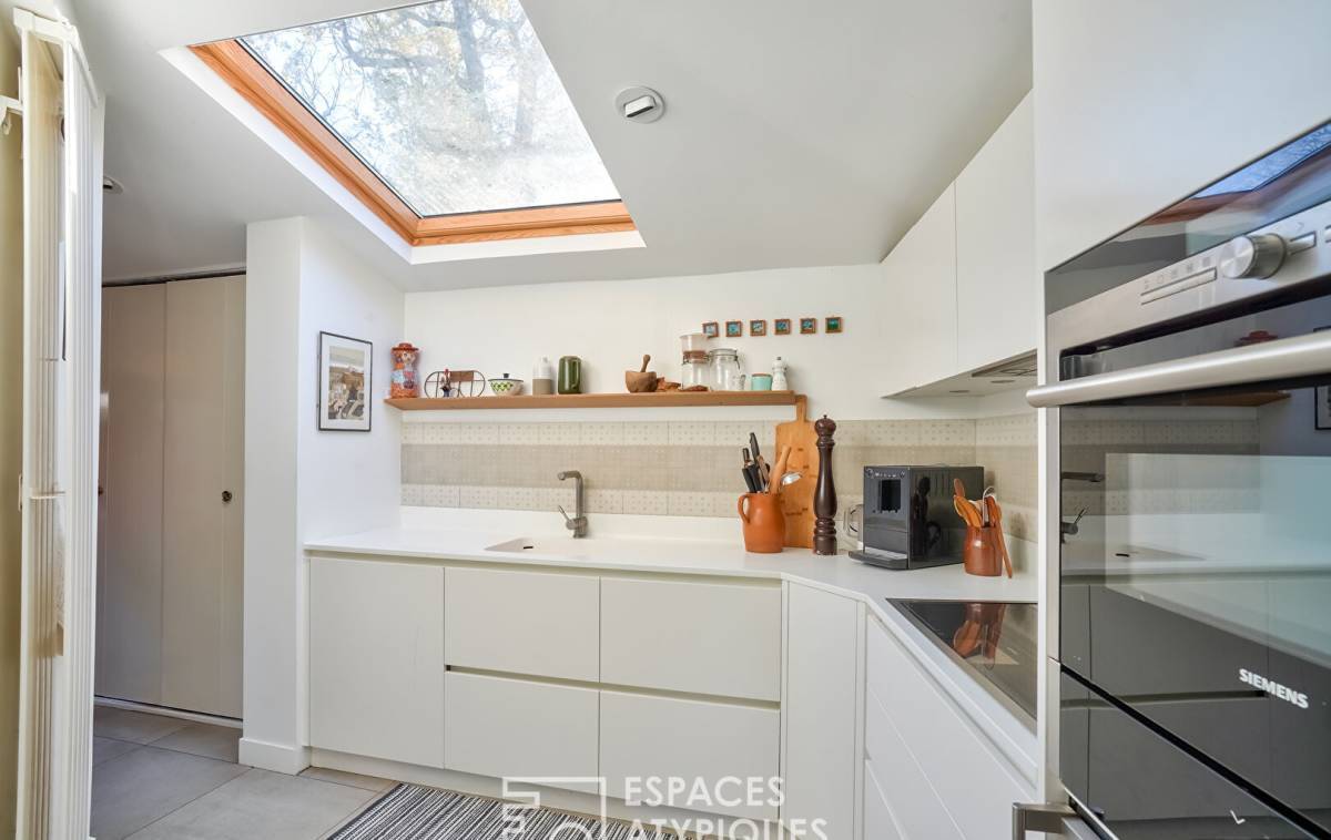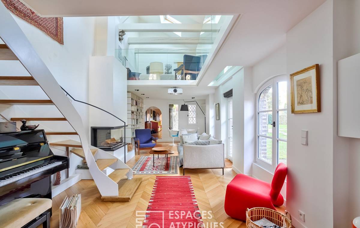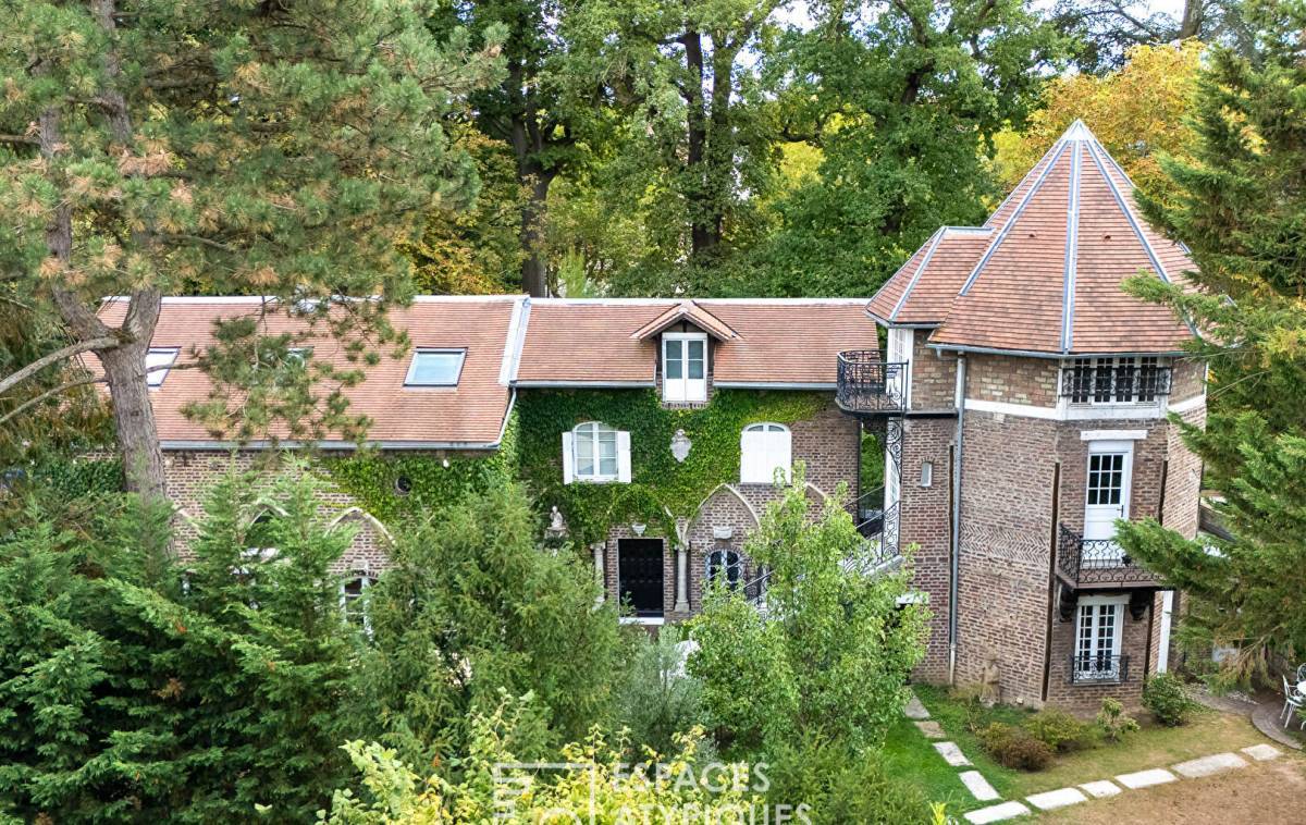 Immerse yourself in the past with this magnificent, completely renovated farmhouse from 1830, nestled in the green surroundings of the town of Vaucresson. Built on a beautiful wooded plot of 850 m2, this 162 m2 house which has retained many period elements, offers a striking contrast between authenticity and contemporary refinement. Between old doors and old beams, the charm operates from the entrance, which leads on one side to a dining area and a fully equipped modern kitchen, and on the other to the 35 m2 cathedral living room. This space, with herringbone parquet flooring and a beautiful insert fireplace, is a real cocoon with a warm atmosphere. Its numerous openings generously let in natural light. The tailor-made staircase is integrated discreetly and leads to the mezzanine which houses the parental space. Continuing from the office area, then the bedroom, the dressing room and the bathroom are revealed. The turret, accessible from the inside and outside of the building, offers a completely independent sleeping area with a bathroom and two beautiful bedrooms, one of which reveals a superb wooden frame and a small balcony with a breathtaking view on the garden and the surrounding area. A 14 m2 outbuilding with bedroom and bathroom, which can be connected to the main house, completes the services of this exceptional property, unique in the area. The complete renovation has transformed this building into a modern oasis while respecting period features such as arched windows and columns, thus offering the best of both worlds in a harmonious setting. ENERGY CLASS: D / CLIMATE CLASS: D Estimated average amount of annual energy expenditure for standard use, established based on energy prices for the year 2021: between EUR2,300 and EUR3,190.
