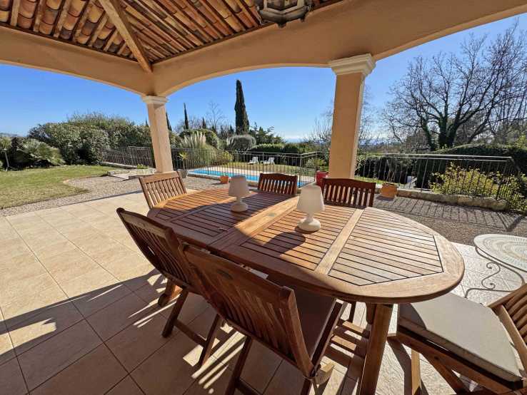 Vence - Neo-Provencal villa of 155 m2 comprising on the ground floor: Entrance, living room with dining area, fitted kitchen, bedroom with bathroom, WC and dressing room, laundry room, separate WC. Upstairs: 3 bedrooms with cupboards, bathroom, shower room and separate WC. Large covered terrace. Beautiful landscaped garden of 1,500 m2 with 10x5 swimming pool. Garage Information on the risks to which this property is exposed is available on the Géorisques website: www.georisques.gouv.fr