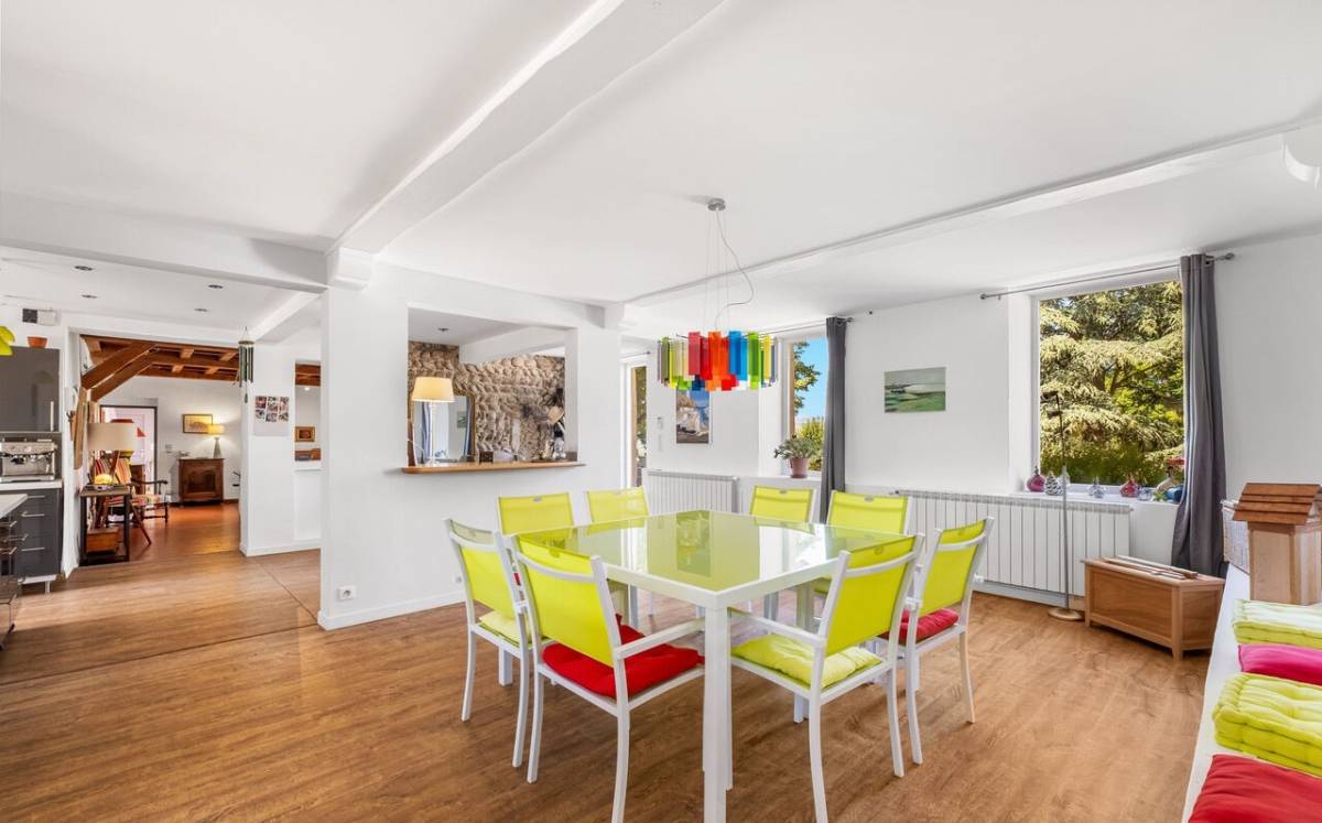 Breathtaking views from this tastefully restored farmhouse, offering 310 sqm of living space and 200 sqm of outbuildings, all set on 6,000 sqm of wooded land. This farmhouse with its natural stone facades is revealed at the end of a hilly path. Once through the porch, the interior garden offers a magnificent view of Pilat. Below, a swimming pool allows you to fully enjoy the tranquility and beauty of this exceptional location. From the entrance, the charm operates with a large living room revealing a dining room bathed in light and its contemporary kitchen. The ensemble creates a tasteful architectural contrast. The subtle blend of design and stone enhances the feeling of well-being and history that emanates from these walls. To the side, an opening reveals a large living room, magnified by its fireplace and French ceiling. The terracotta tiles and large lattice windows reinforce the authenticity of the place. Extending from this living space, a large office bathed in light thanks to its double exposure takes place, and opens onto a shaded terrace. Finally, a master suite follows this intimate workspace. The second sleeping area is located upstairs. Comprising four bedrooms, it can accommodate children and loved ones in comfort and ideal tranquility. Outside, the landscaped garden, terraces, and unobstructed views of the surrounding nature offer a truly peaceful setting. The heated swimming pool perfectly complements this bucolic setting. The exemplary restoration demonstrates the owner's passion for careful work, noble materials, and respect for the soul of the old building. Other beautiful surprises are to be discovered in this large and beautiful residence with its atypical charm. A carport for two vehicles, a vaulted cellar, and numerous outbuildings complete this property, including a former garage converted into a private workshop. A unique property, only a 5-minute drive from the shops. And from October 2025, opening of the Reventin-Vaugris interchange bringing Lyon closer to 25 minutes. Oil heating, heat pump for the swimming pool, insert fireplace Energy Class: DPE in progress Estimated amount of annual energy expenditure for standard use: between EUR2,500 and EUR3,400 (average prices indexed to January 1, 2024). Information on the risks to which this property is exposed is available on the Géorisques website: