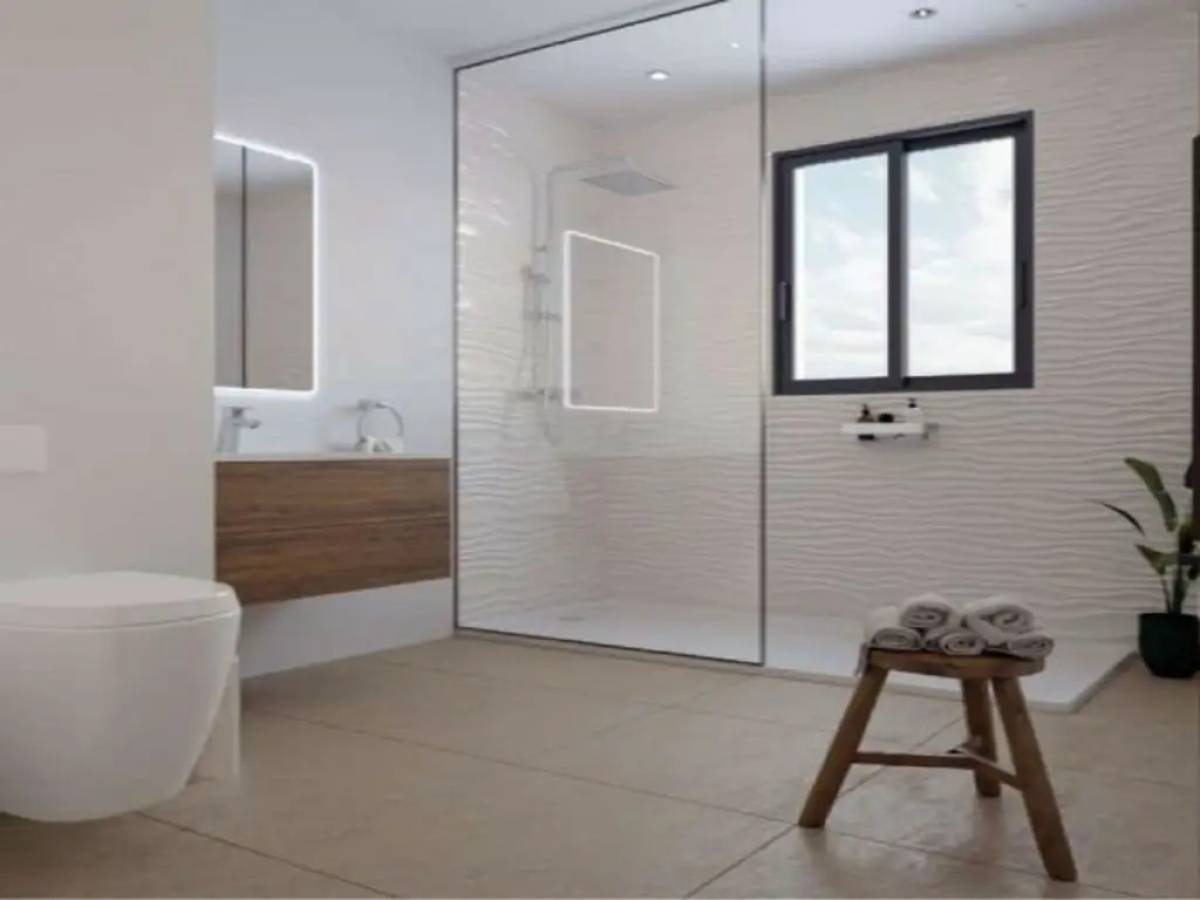 60x60 cm tiled floors and full-height earthenware in bathrooms