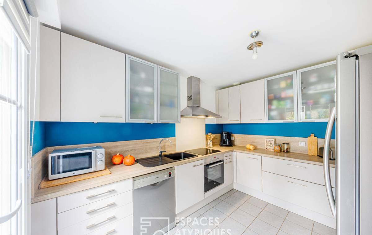In the heart of a quiet, residential neighborhood in Villepreux, this recently built 145 sq m (1,560 sq ft) house, in excellent condition, impresses with its modern design and high ceilings, offering a spacious and functional living environment. Set on a 580 sq m (6,240 sq ft) plot, this family home is organized around a generous, light-filled living area, designed to combine comfort and conviviality. Its contemporary architecture and well-proportioned rooms create a pleasant and harmonious living space. From the moment you enter, the tone is set: a vast 55 sq m (592 sq ft) living room encompasses a bright lounge, a dining area, and a perfectly integrated open-plan kitchen. The ground-floor master suite offers welcome privacy. Upstairs, there are three bedrooms, one with an en-suite bathroom, and a private terrace that extends the relaxation area. A double garage and two parking spaces complete the property. Outside, the landscaped garden invites tranquility. A true extension of the living areas, it offers an ideal space for al fresco dining or quiet relaxation, sheltered from any disturbances. Located close to schools (primary, middle, and high school), shops, and transport links to Paris, this house perfectly combines family life, tranquility, and everyday convenience. ENERGY RATING: B / CLIMATE RATING: A. Estimated average annual expenses based on average energy prices indexed for 2021, 2022, and 2023 (including subscriptions): Between EUR830 and EUR1160.