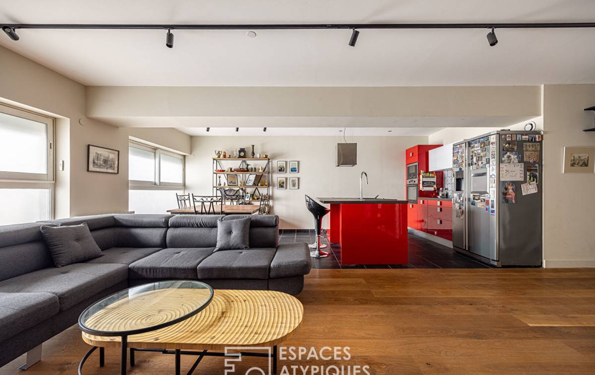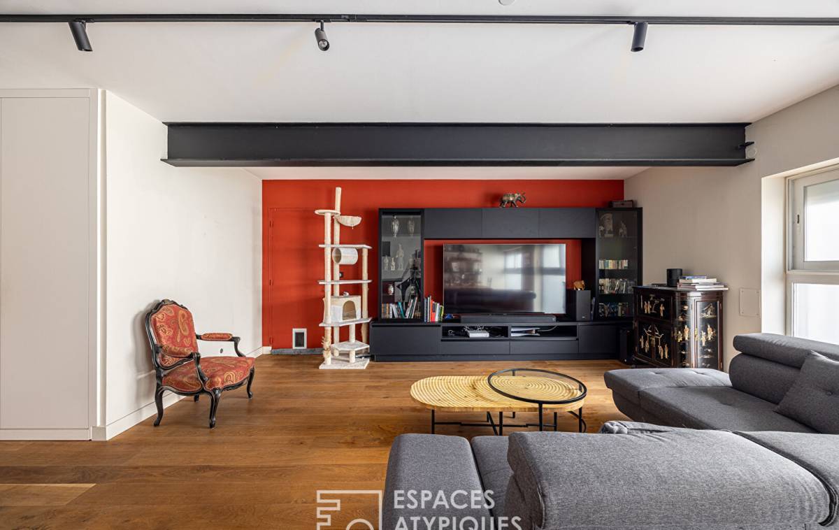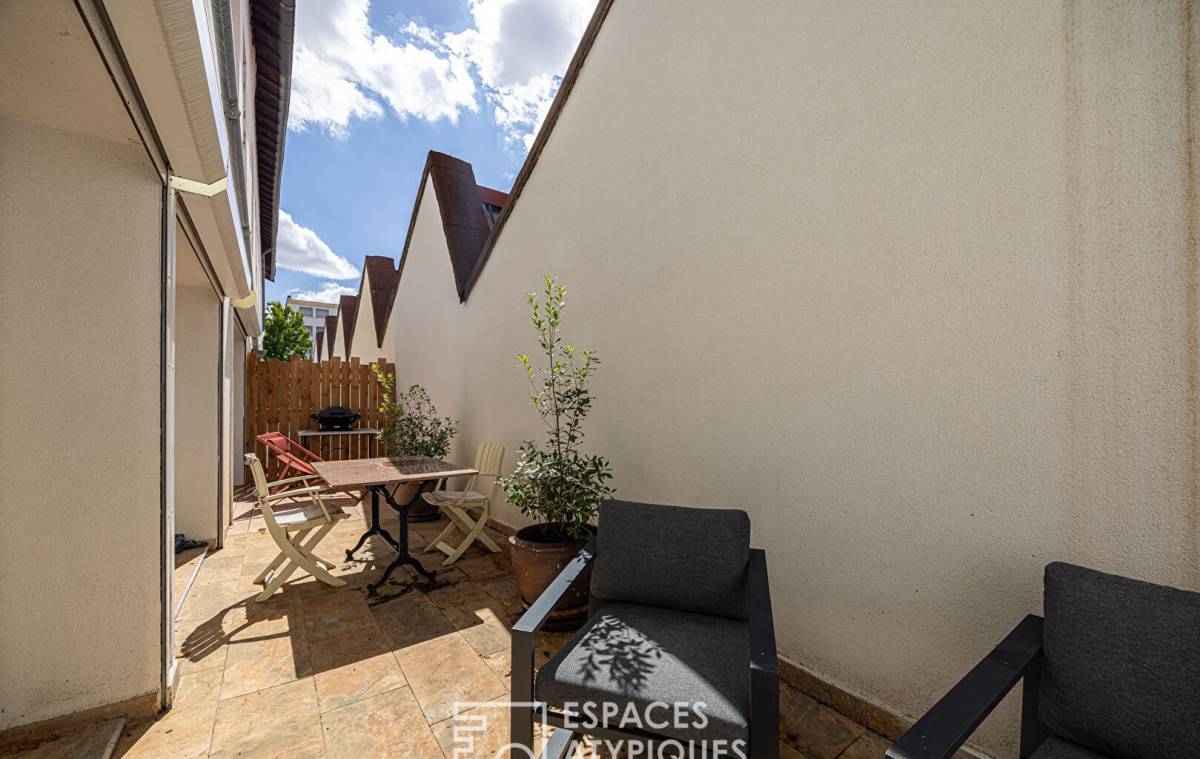 In the town of Villeurbanne, a 5-minute walk from the République metro station, this former doll factory was transformed in 2012 into a two-story loft with a 10sqm outdoor patio. Formerly a 123sqm dance hall, the ground floor has found a new life with two elegant recreation rooms, ready to host moments of sharing or to be reinvented according to your desires. A pleasant covered exterior extends this relaxation space. An elegant master suite with its private bathroom also finds its place. An industrial-style staircase leads upstairs, where a spacious and welcoming living room opens up, incorporating a fitted kitchen and a dining area. In its extension, a corridor leads to a second living room, converted into a reading corner or TV room, which can easily be transformed into an additional bedroom and benefits from direct access to the terrace. The sleeping area consists of two bedrooms with distinct atmospheres: one benefits from direct access to the terrace, while the other, on the second day, is distinguished by its calm and its independent access bypassing the living room to reach the stairs. A bathroom equipped with a whirlpool bathtub with integrated laundry area provides comfort and practicality, completed by independent toilets suspended on this level. A dressing room also finds its place. With direct access to an open-air patio, this loft offers a private exterior of 10 sqm, a real bright terrace in the heart of Villeurbanne, ideal for enjoying a relaxing space in complete privacy. The property has a closed garage included and is located at a neighboring address. Having retained its industrial envelope while having benefited from a renovation in accordance with the requirements of current comfort, this loft still offers many possibilities for customers looking for volumes, personalization and a location close to all amenities. ENERGY CLASS: C - CLIMATE CLASS: A Estimated average amount of annual energy expenditure for standard use, established from average energy prices indexed for the years 2021, 2022, 2023 (including subscriptions) between EUR2,990 and EUR4,110 -