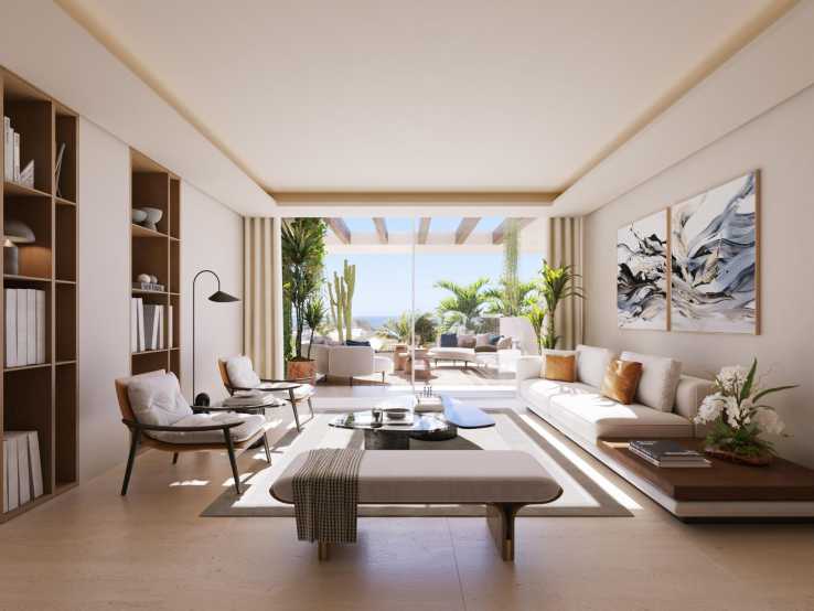 LUXURY HOMES ON THE GOLDEN MILE OF MARBELLA Exclusive complex of 28 apartments and penthouses with 3 and 4 bedrooms, all with en-suite bathrooms, carefully distributed in four architecturally distinct blocks called Agua, Piedra, Madera and Arena, maximizing privacy between neighbors. Ground floor apartments with private gardens, first floor apartments with spacious terraces, and penthouses with sea and mountain views with magnificent terraces and solariums with private pools. Each apartment is equipped with sophisticated home automation and offers two parking spaces and a storage room, as well as pre-installation for electric car charging. Gated community with 24-hour security. Lush gardens with a stunning outdoor saltwater pool, a spa, a heated indoor pool with a magnificent waterfall, a fully equipped gymnasium, a yoga room and saunas, create a haven of tranquility and peace for residents. Families with young children will enjoy the community clubhouse and children's pool. Located in the heart of Marbella's Golden Mile, just a few minutes' walk from the iconic Marbella Club Hotel. Marbella is considered the capital of the western Costa del Sol. Bathed by the sea and sheltered by the mountains, it has splendid and extensive beaches with calm waters, marinas, its 21 golf courses and a wide gastronomic offer, from the typical beach bars and tapas bars to the most luxurious Michelin-starred restaurants. All this, coupled with its microclimate with 320 days of sunshine a year, makes Marbella one of the most sought-after destinations in Spain to live in.