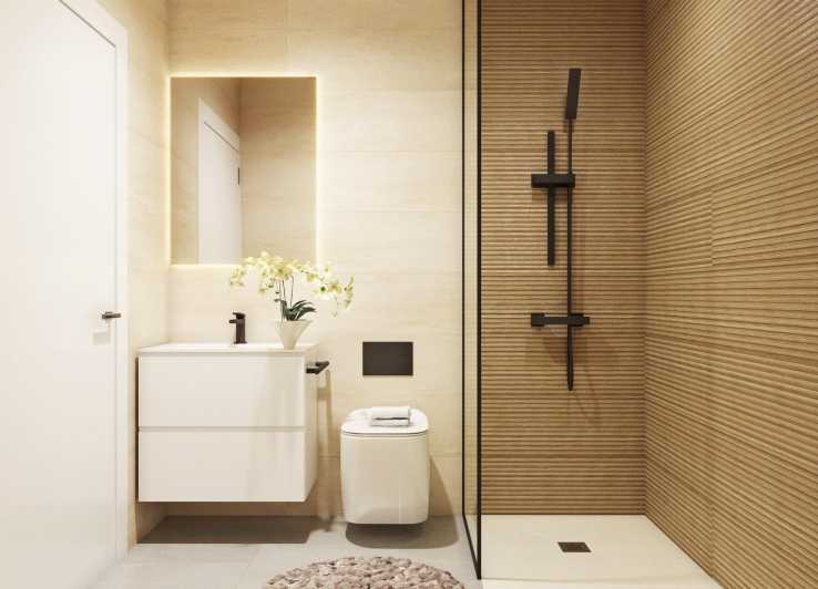 The villas are built on one floor and have a private solarium, 3 bedrooms, 2 bathrooms, kitchen open to the living room, garden with parking space.