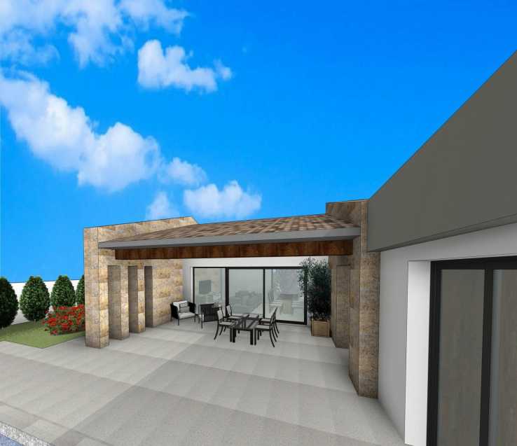 It will be equipped with an 8x4m swimming pool with salt chlorinator, a tiled pool perimeter, a landscaped area with gravel, a motorized automatic access gate to the plot (motor included).