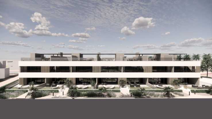 NEW BUILD RESIDENTIAL COMPLEX IN A PRIVATE COMPLEX IN THE PROVINCE OF MURCIA New residential complex of apartments and bungalows in a private complex. The beautiful properties have 1, 2 and 3 bedrooms and 1 or 2 bathrooms, open plan kitchen with spacious living room, fitted wardrobes, terraces with views of the green areas of this large luxury resort. Bungalows on the ground floor with private garden, bungalows on the top floor with private solarium. The complex has a communal swimming pool and all properties have parking and a storage room. Located in a private complex, with a main entrance and 24-hour security, the resort is designed around an impressive complex of 126 villas. The complex is designed around an impressive green space of 126,000 m2. It includes walking and cycling paths, sports facilities, paddle and tennis courts, mini-golf course, gardens, dog parks, recreation areas, clubhouse..... It is also in this central area that the jewel of the resort is located, a crystal clear artificial lake with almost 17,000 m2 of water surface, surrounded by white sandy beaches and palm trees, bringing a piece of the Caribbean to the region of Murcia. There are two islands on the lake, one of which has its own bar, as well as "beach chiringuitos" spread around the lake. The complex is strategically located less than 4 km from the beach and the town of Los Alcázares, where you can practice various water sports, surrounded by several golf courses and the city of Cartagena, less than 15 minutes by car and 22 km from Murcia airport, which allows you to have a wide cultural offer, Gastronomic and sporty at your fingertips.